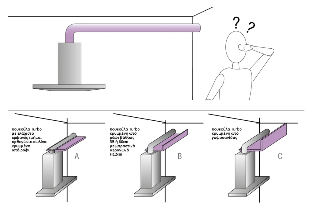 - Εάν χρησιμοποιείτε έναν πλαστικό σωλήνα, αυτός μπορεί να καμουφλαριστεί από ένα λεπτό ράφι. Η χρήση εύκαμπτου σωλήνα δε συνιστάται, επειδή κάνει πολύ θόρυβο.