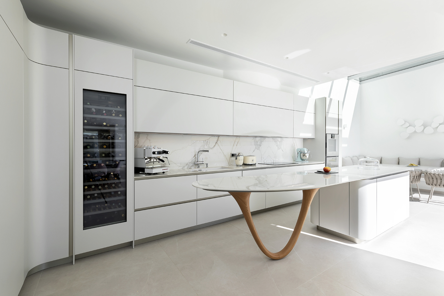 Η κουζίνα Ola σχεδιάστηκε και υλοποιήθηκε από τη Gruppo Cucine σε μια ιδιαίτερη κατοικία στη Βούλα, αποδεικνύοντας πως η αισθητική μπορεί να συνυπάρχει απόλυτα με τη λειτουργικότητα. Με την υπογραφή της Snaidero και του σχεδιαστικού οίκου Pininfarina, η Ola ενσωματώνει τη φιλοσοφία της κίνησης και της καινοτομίας, φέρνοντας στον χώρο της κουζίνας έναν αέρα δυναμικής πολυτέλειας.