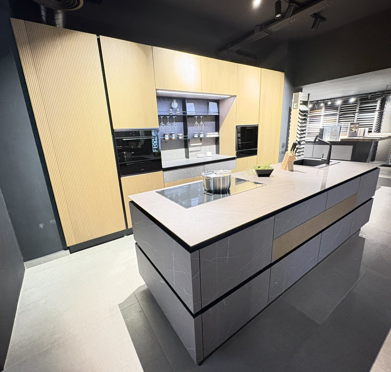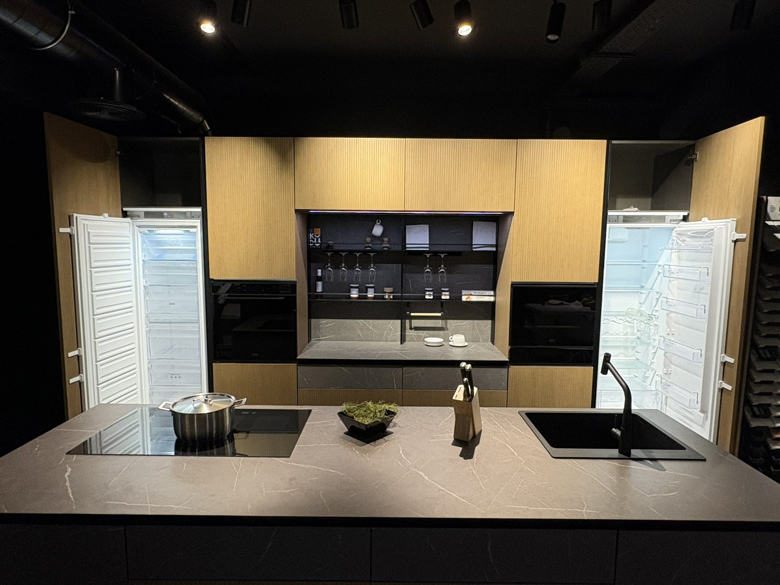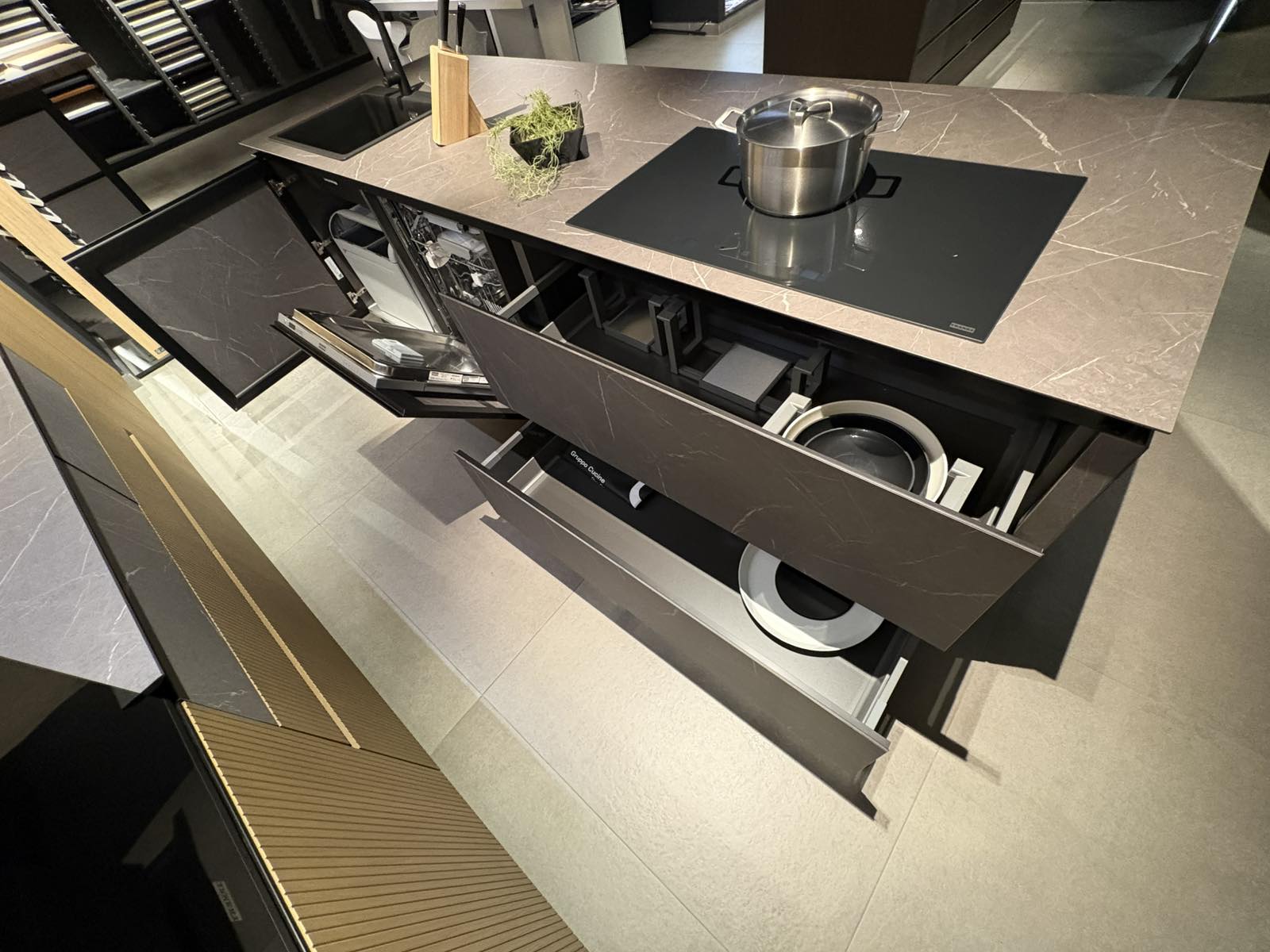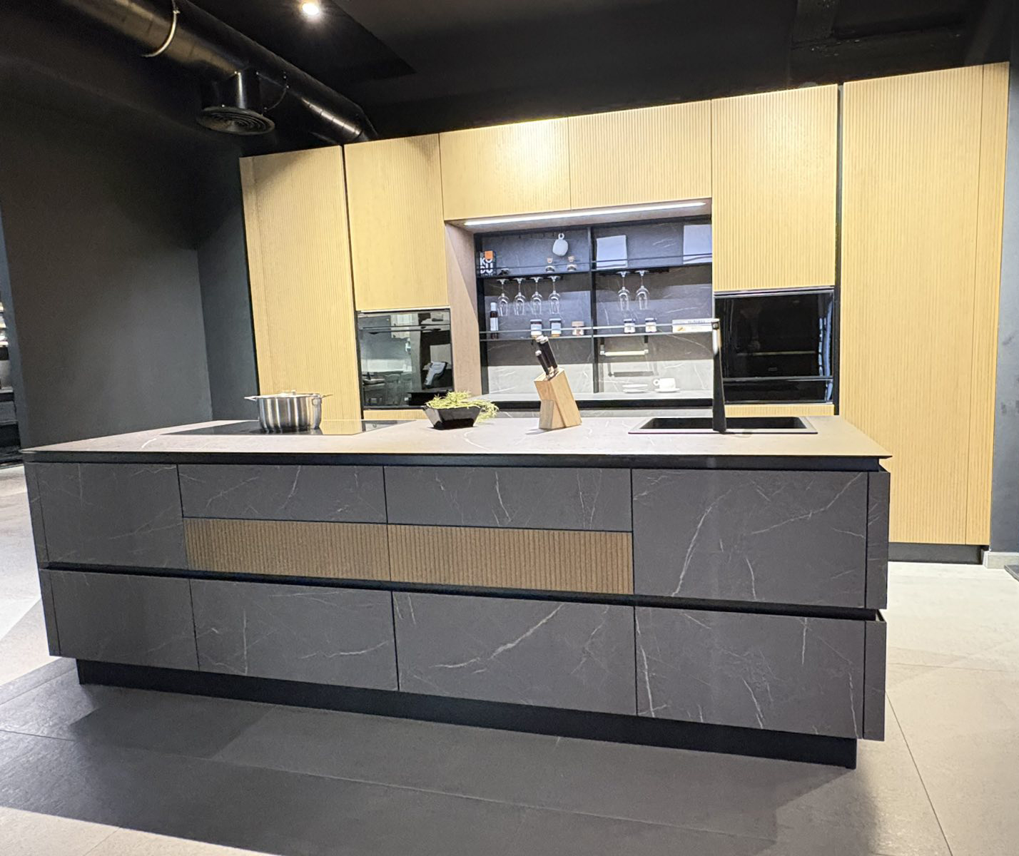 Το εκθεσιακό μοντέλο CORINZIA XA αποτελείται από τη νησίδα, και μια σύνθεση που δημιουργούν ένα σύνολο με μεγάλο αποθηκευτικό χώρο το οποίο μπορεί να ενσωματωθεί και σε ενιαίους χώρους. Οι ηλεκτρικές συσκευές πωλούνται με επιπλέον αξία 1.000€.
