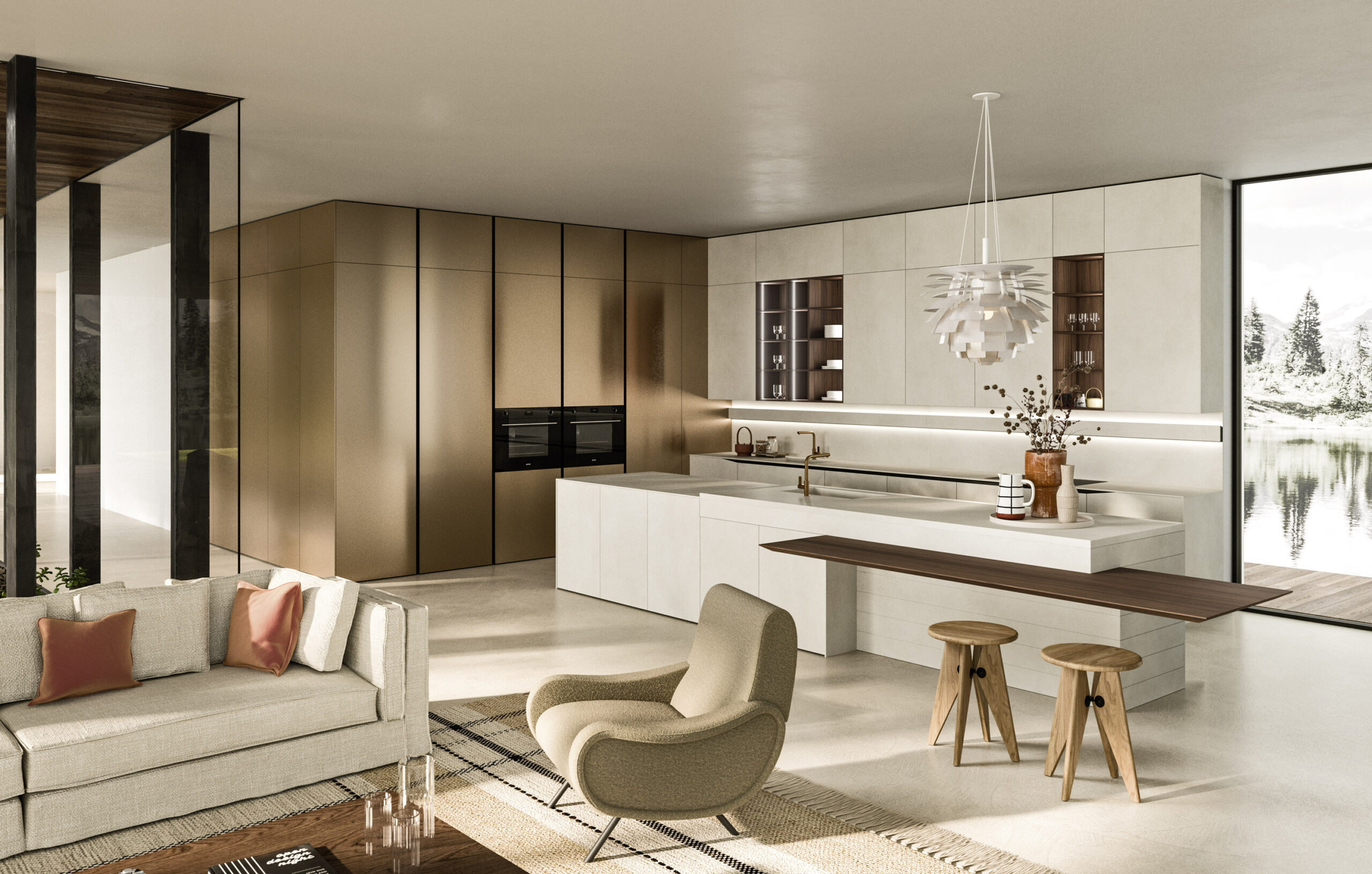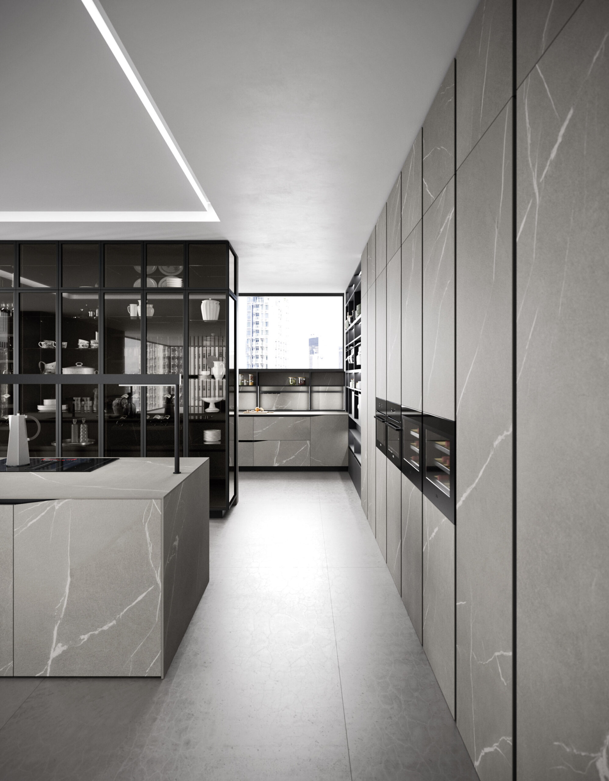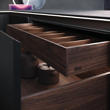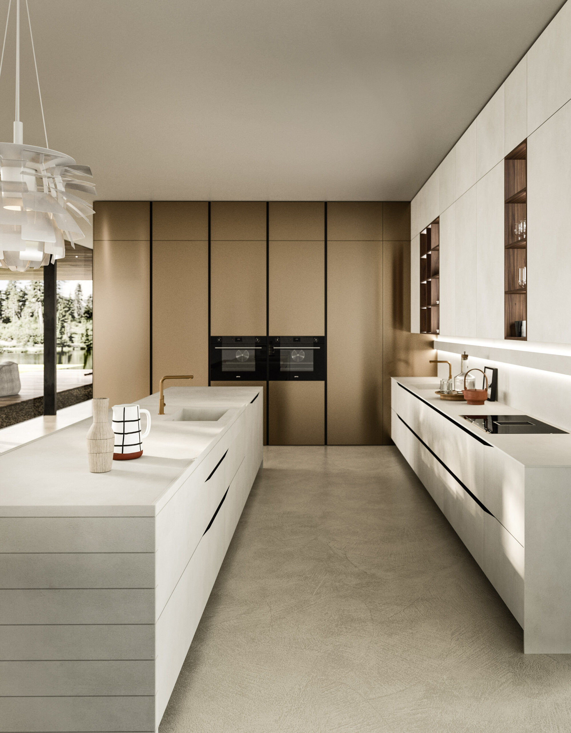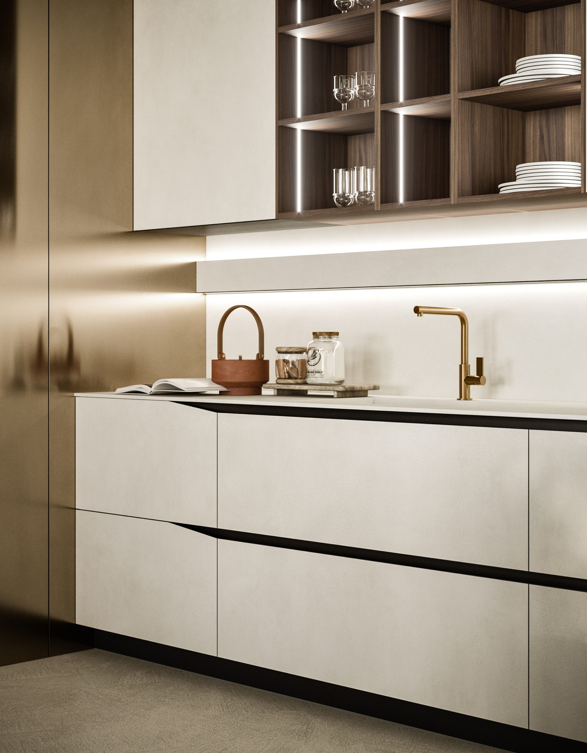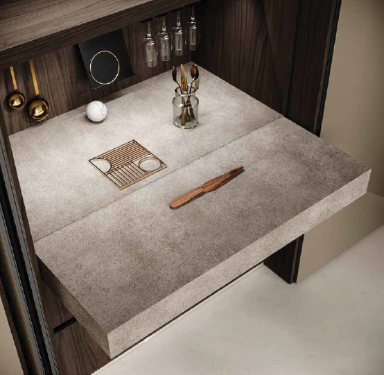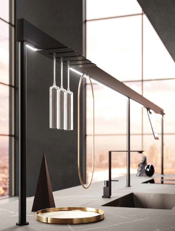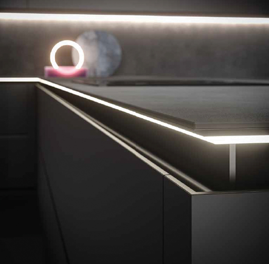 Ο νέος πάγκος εργασίας ARIA, είναι ένα στοιχείο υψηλής αισθητικής που χαρακτηρίζει τον χώρο της κουζίνας. Το σύστημα αποτελείται από ένα ανοδιωμένο προφίλ, ενσωματωμένο στον πάγκο εργασίας, που διαθέτει φωτισμό led. Μια καινοτομία που μετατρέπει μια συνηθισμένη επιφάνεια πάγκου εργασίας σε ένα μοναδικό έργο τέχνης.