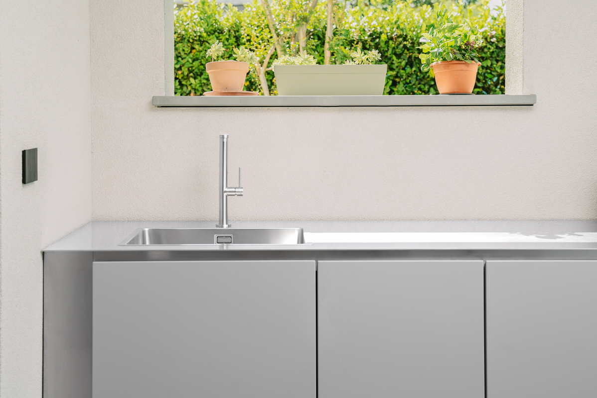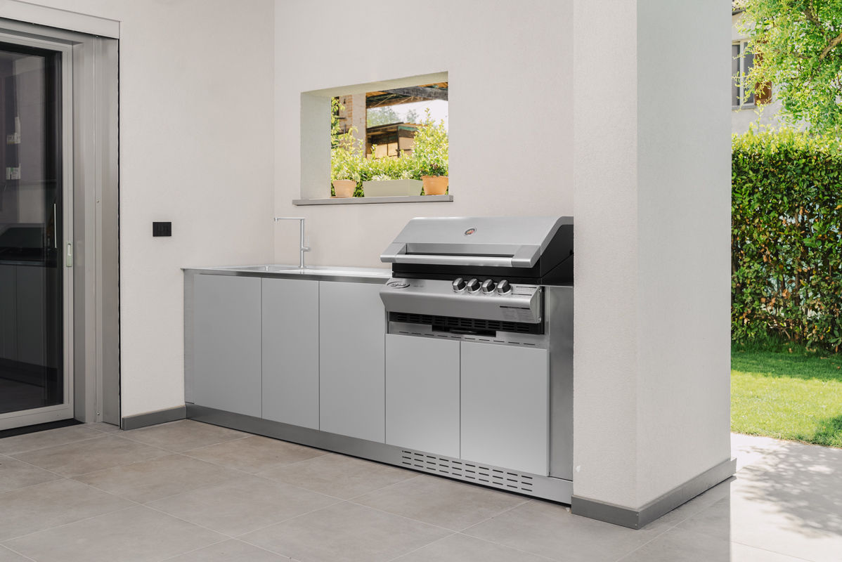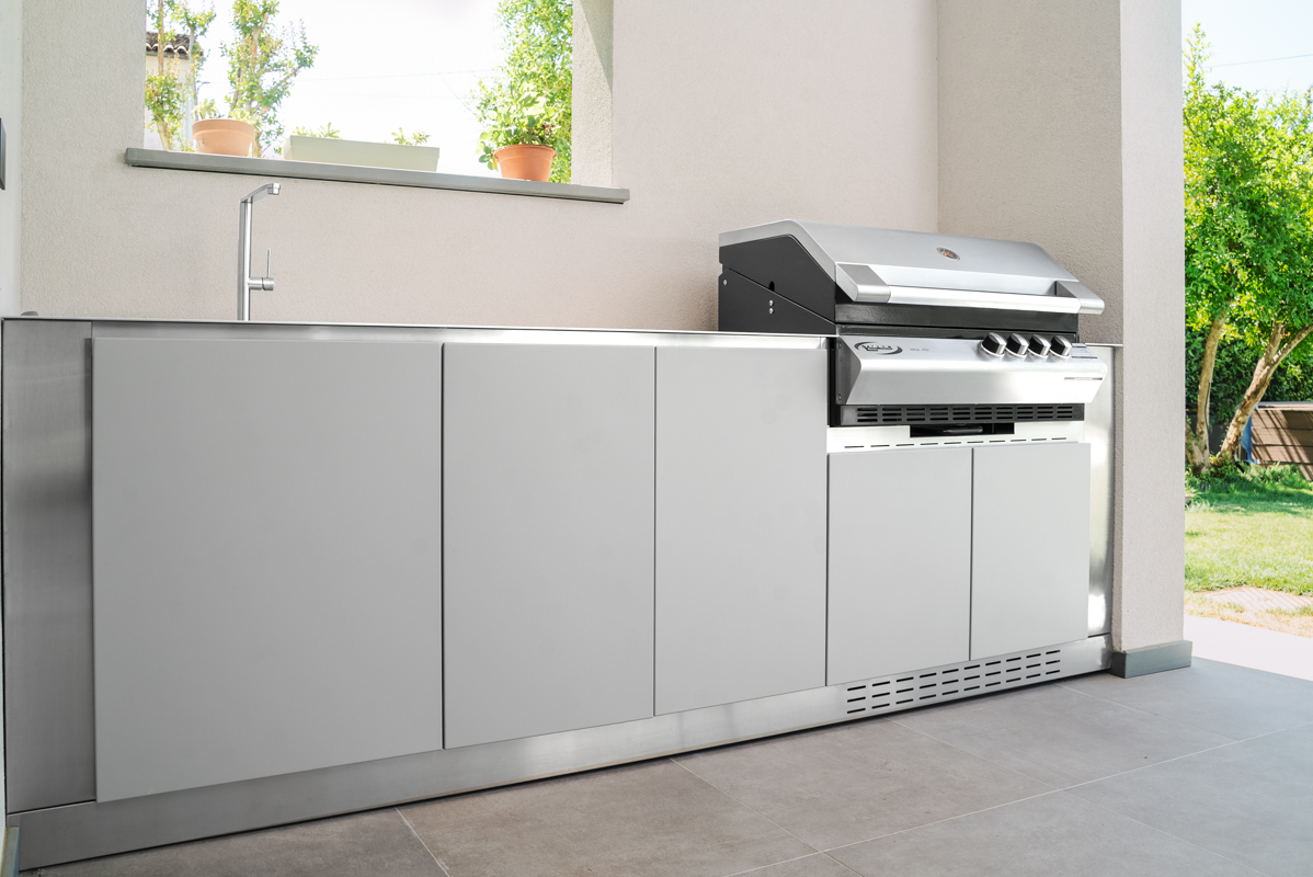 Κουζίνα εξωτερικού χώρου Faenza σε ματ λακαρισμένο φινίρισμα. Άψογός σχεδιασμός, εργονομία και πρακτικότητα.