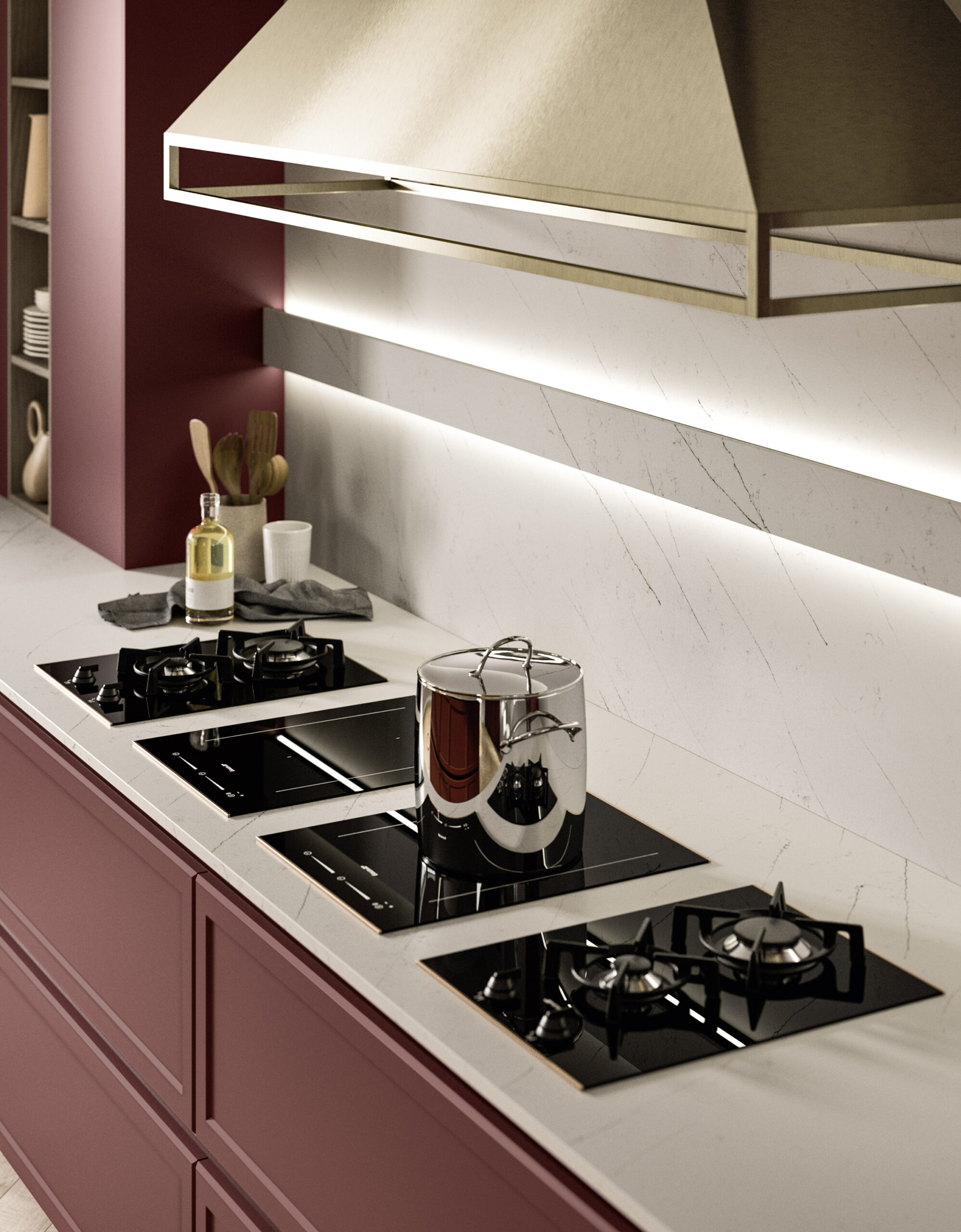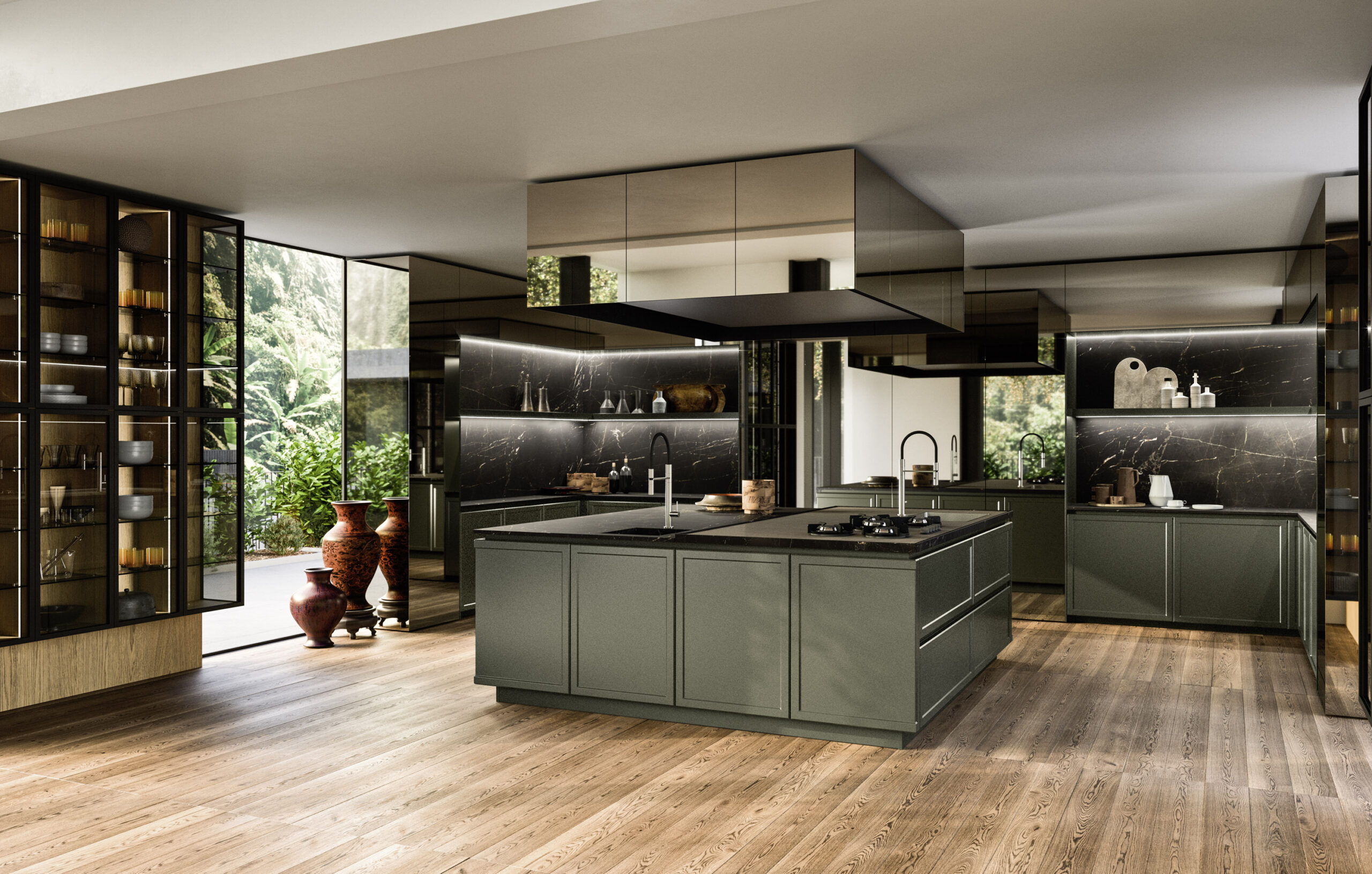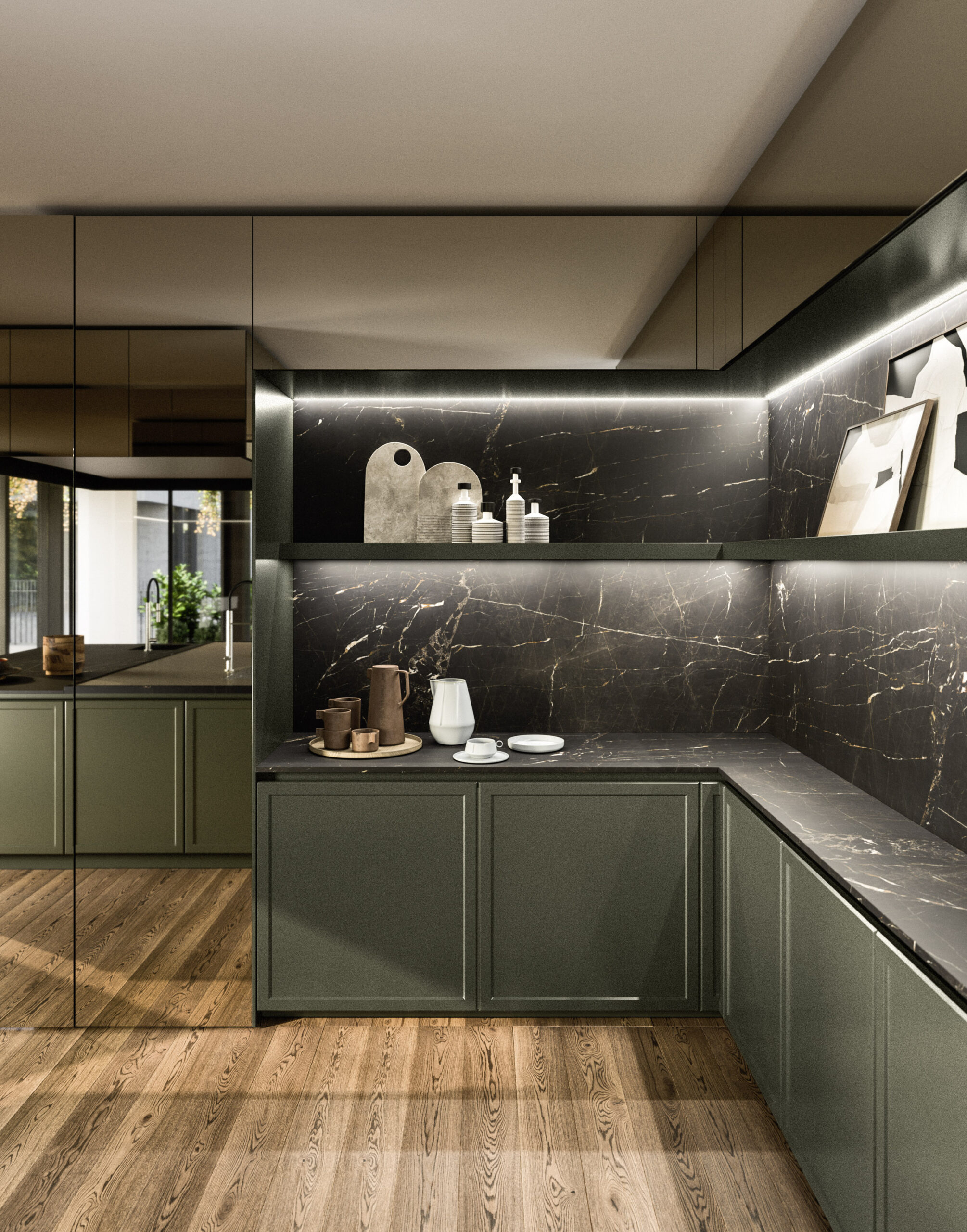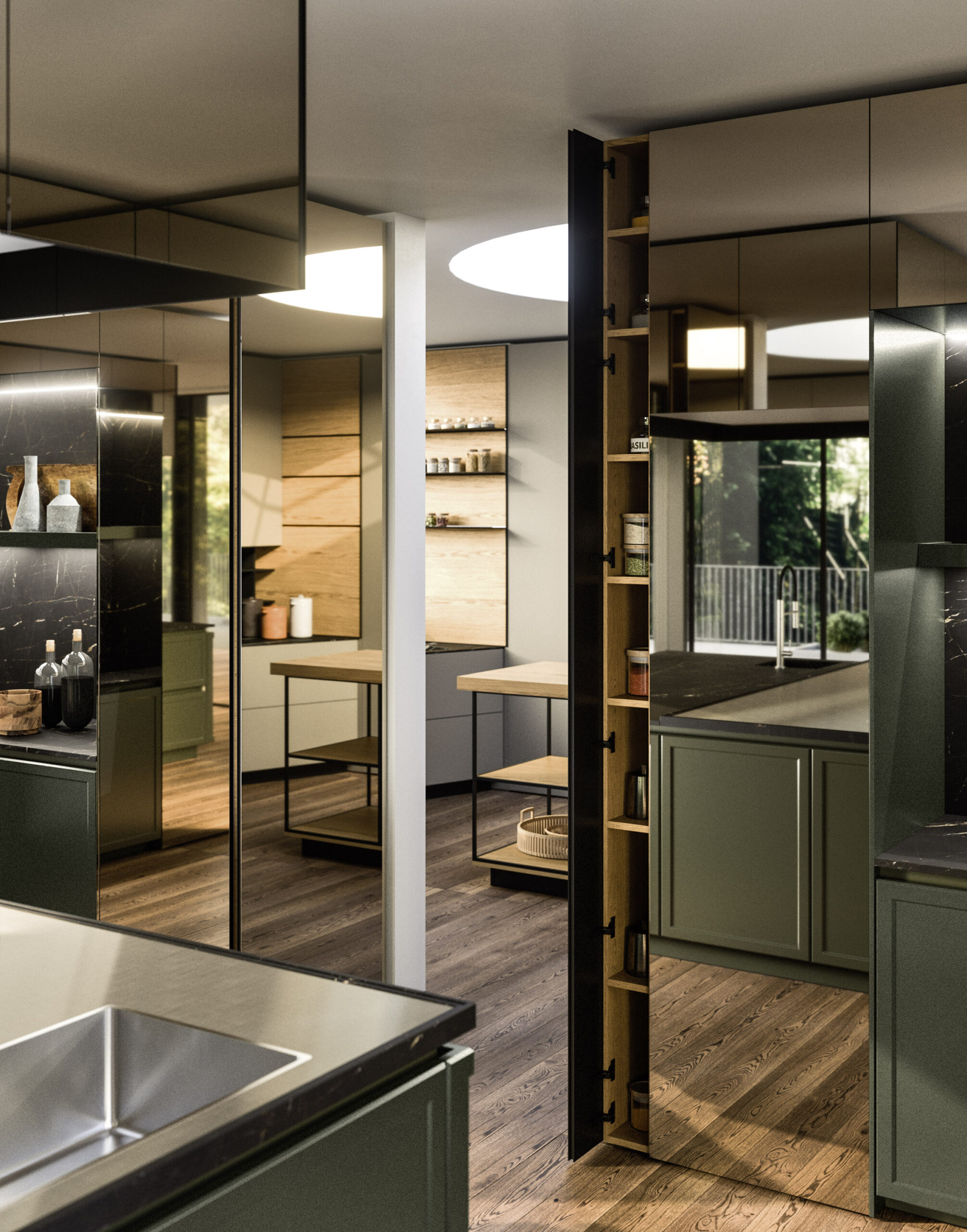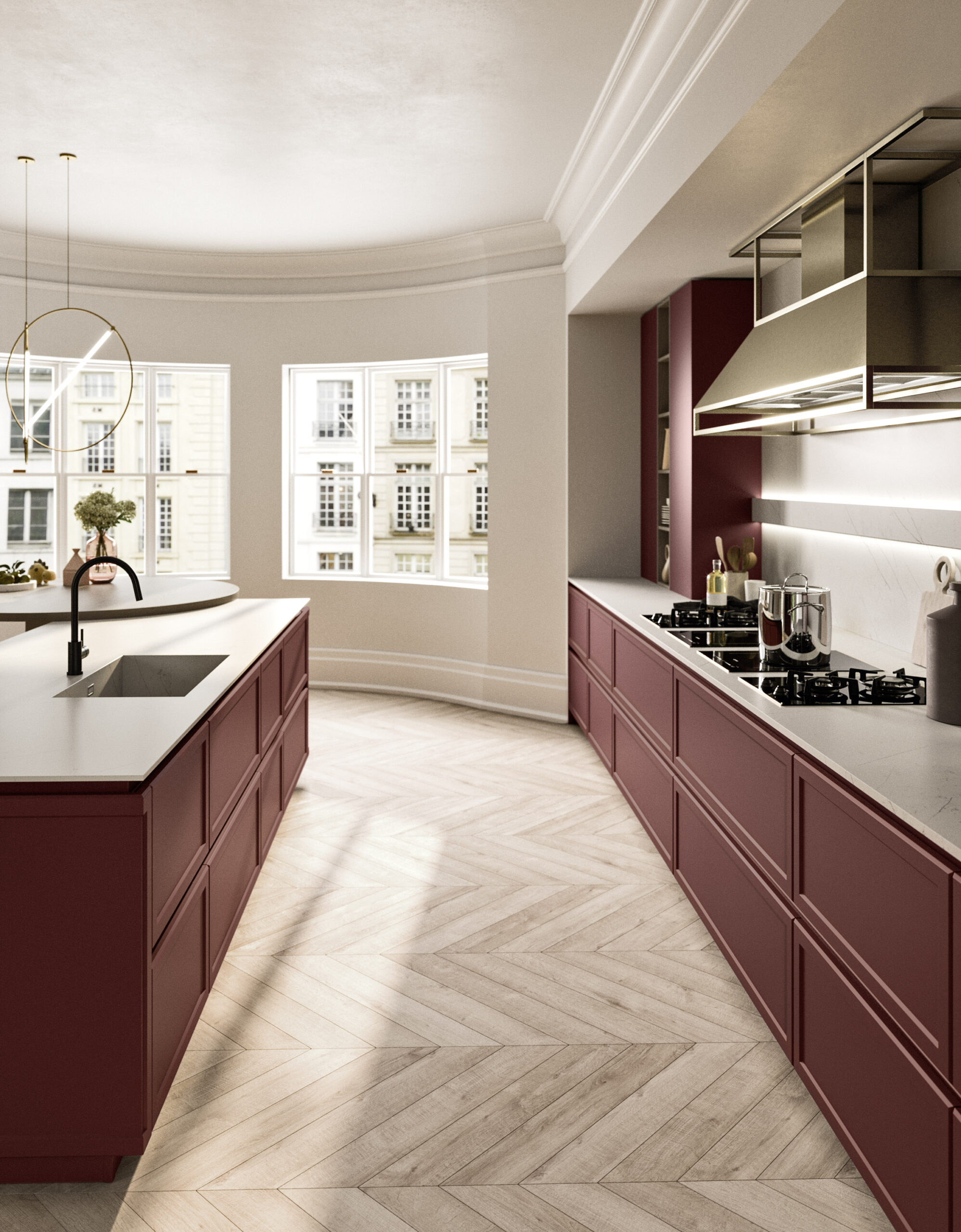 Εκλεπτυσμένη έκφραση μιας οικιακής εικόνας με κλασική έμπνευση αλλά με βιομηχανικές chic επιρροές. Ένα σχέδιο με κλασικό πυρήνα, επανασχεδιασμένο με μια σύγχρονη προσέγγιση, που επιτυγχάνεται μέσω της πόρτας με πλαίσιο και το άνοιγμα με αυλάκι, η οποία αποπνέει μια καθαρή, κοφτερή σιλουέτα και διαχρονική γοητεία.