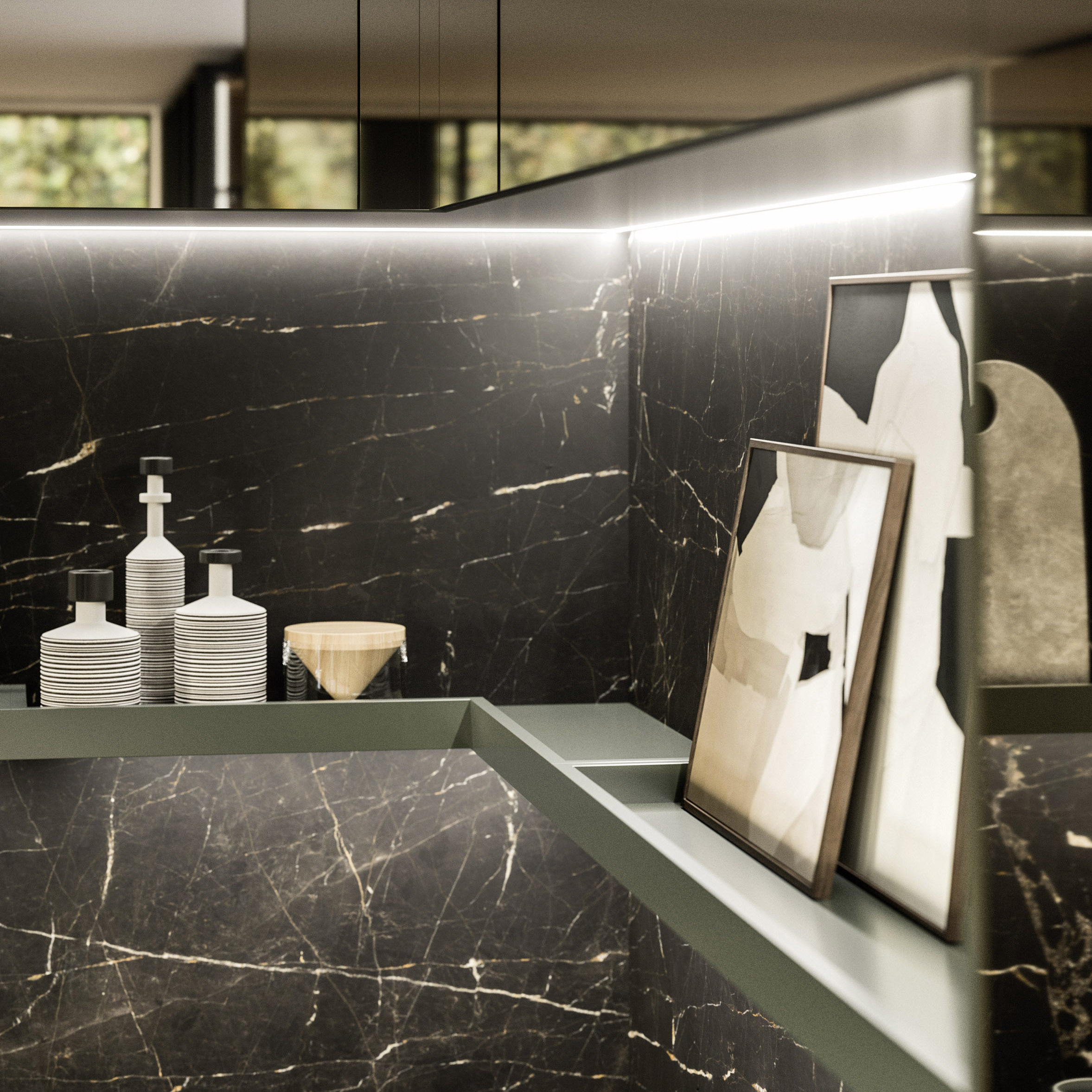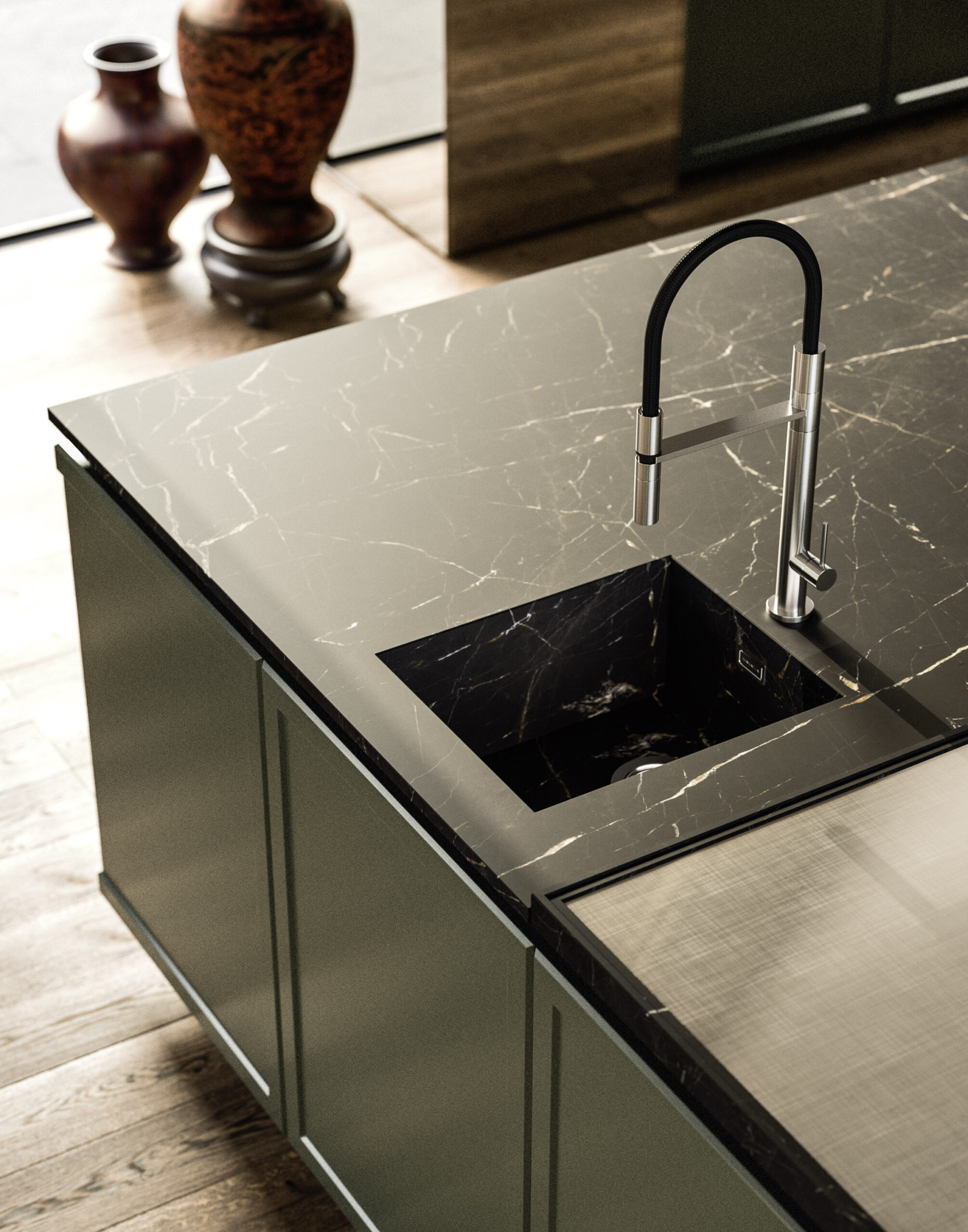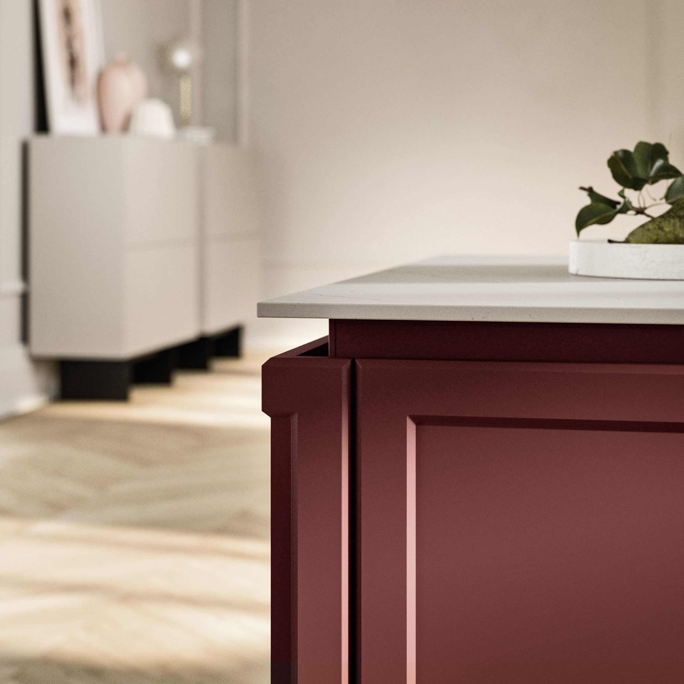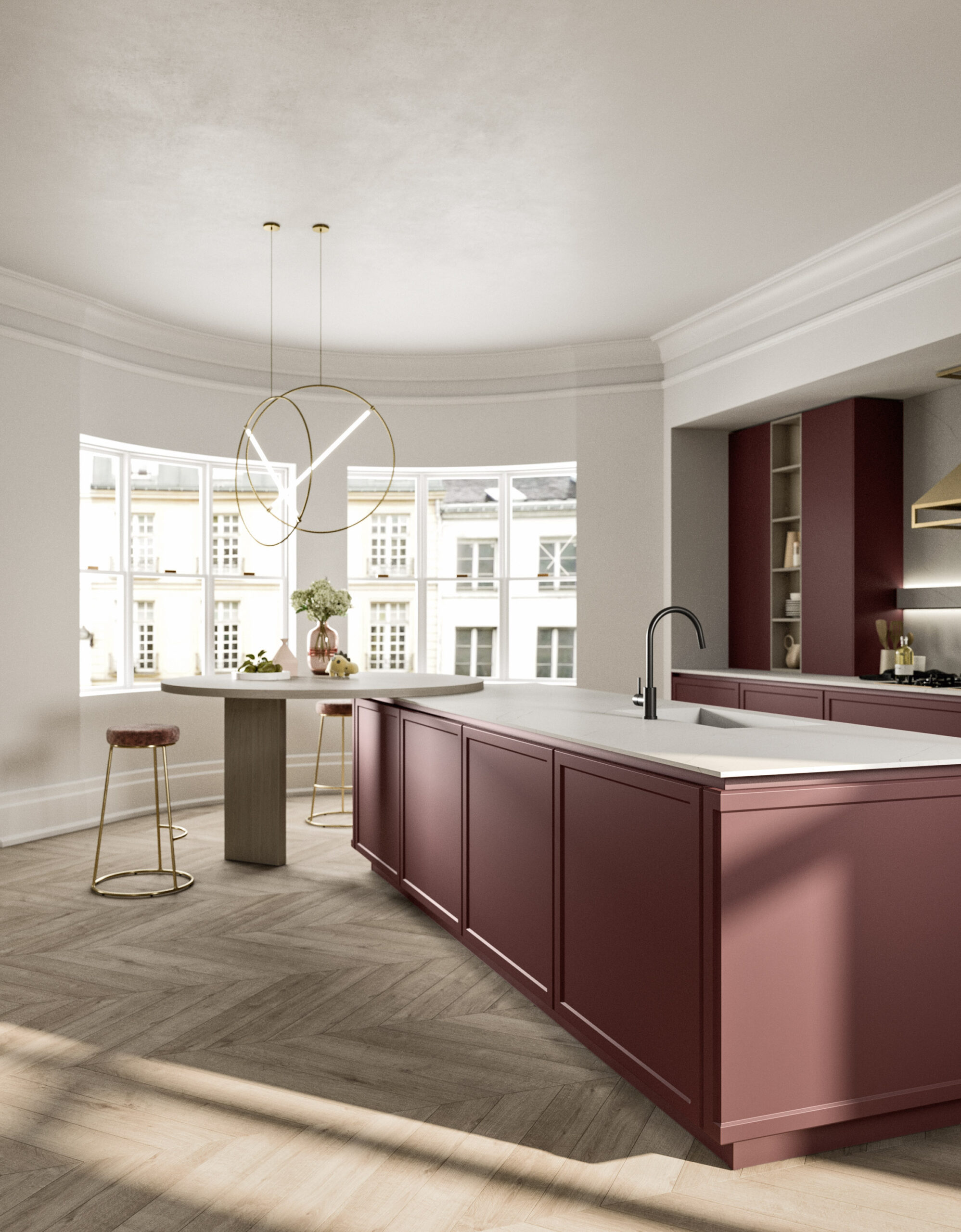 Εκλεπτυσμένη έκφραση μιας οικιακής εικόνας με κλασική έμπνευση αλλά με βιομηχανικές chic επιρροές. Ένα σχέδιο με κλασικό πυρήνα, επανασχεδιασμένο με μια σύγχρονη προσέγγιση, που επιτυγχάνεται μέσω της πόρτας με πλαίσιο και το άνοιγμα με αυλάκι, η οποία αποπνέει μια καθαρή, κοφτερή σιλουέτα και διαχρονική γοητεία.
