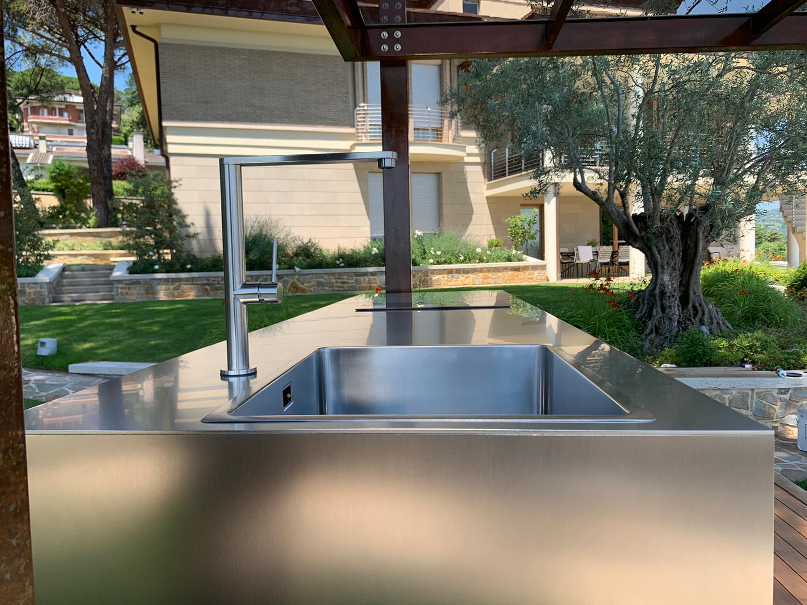 Κουζίνα εξωτερικού χώρου Perugia από φυσικό ανοξείδωτο ατσάλι.