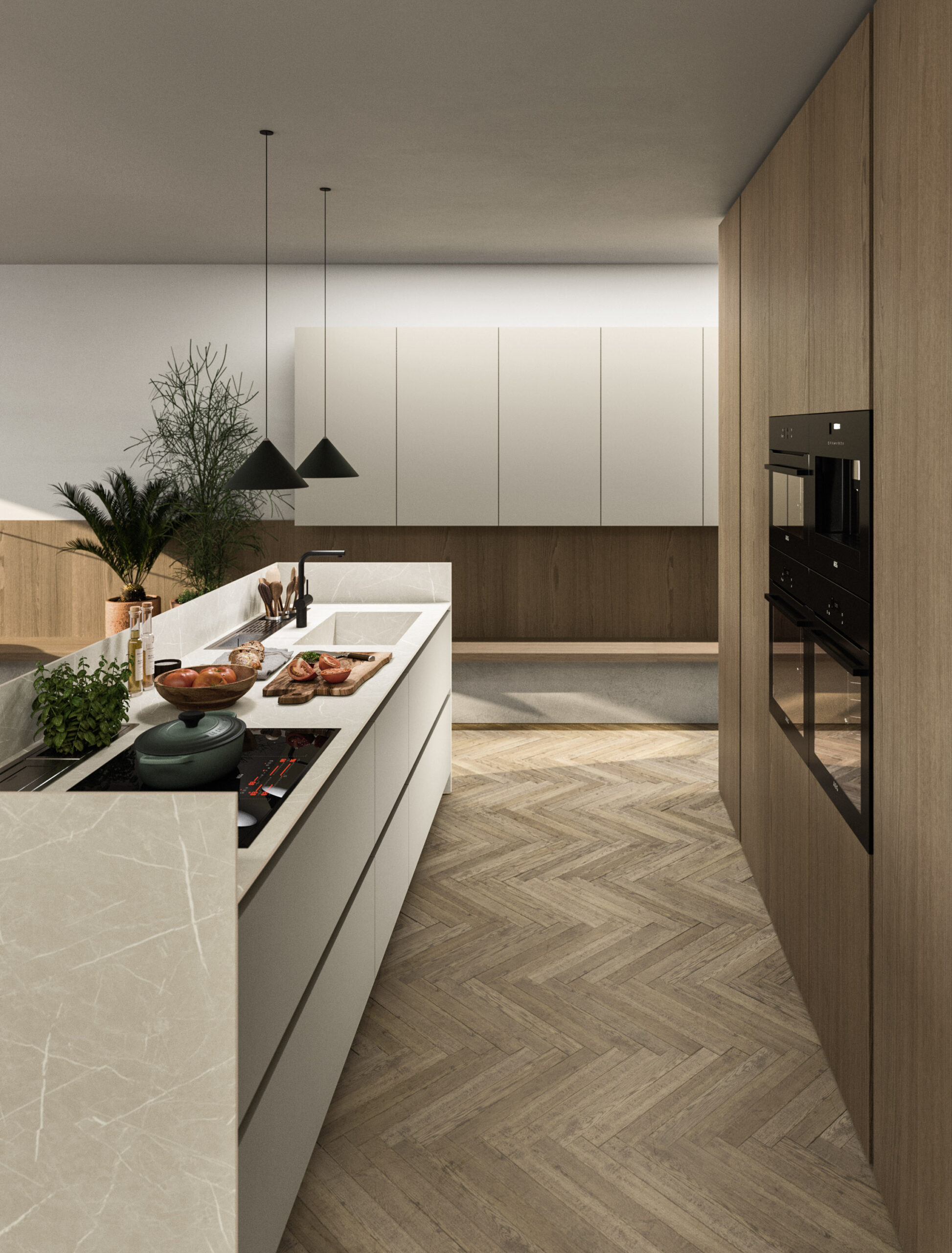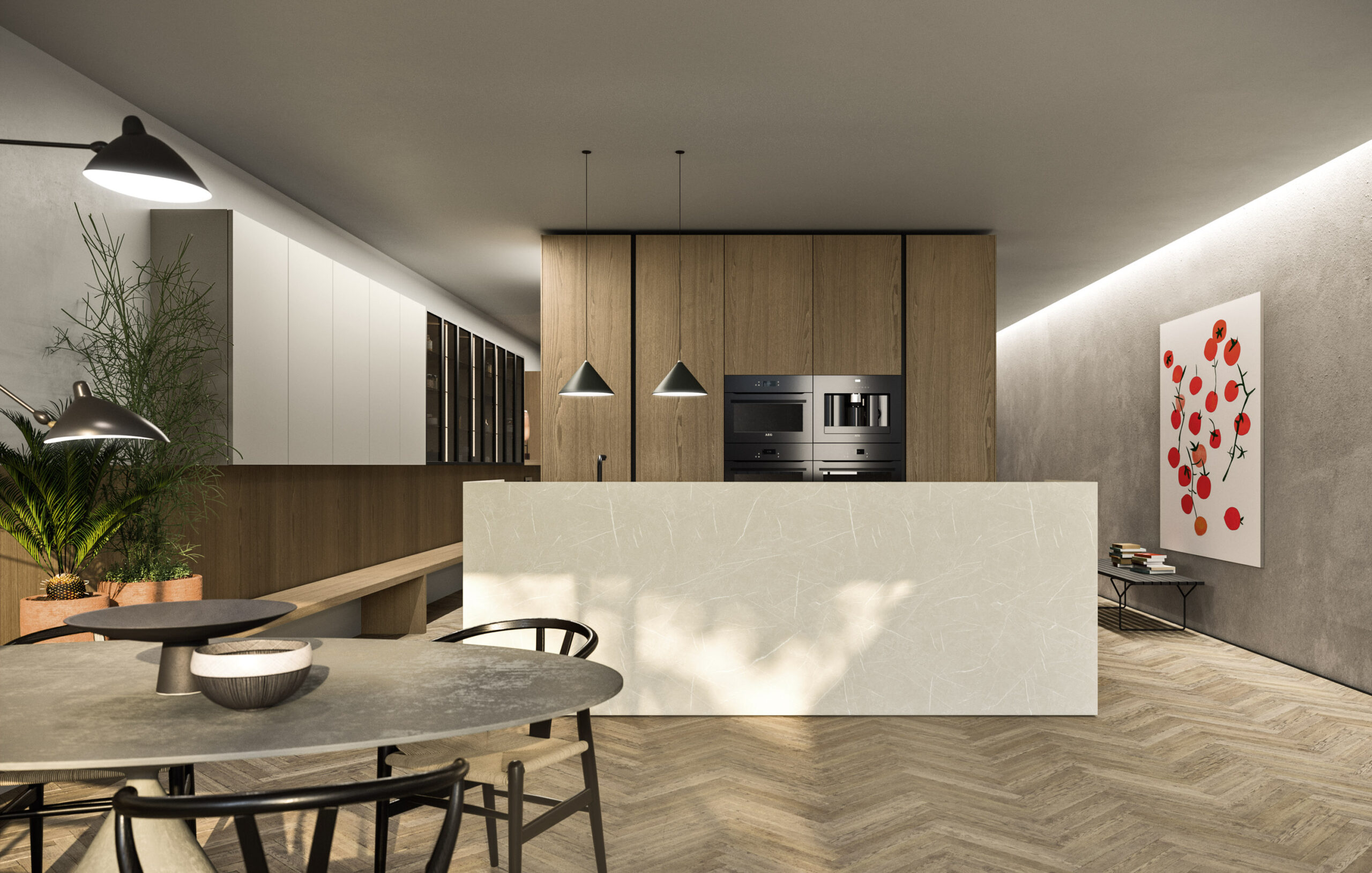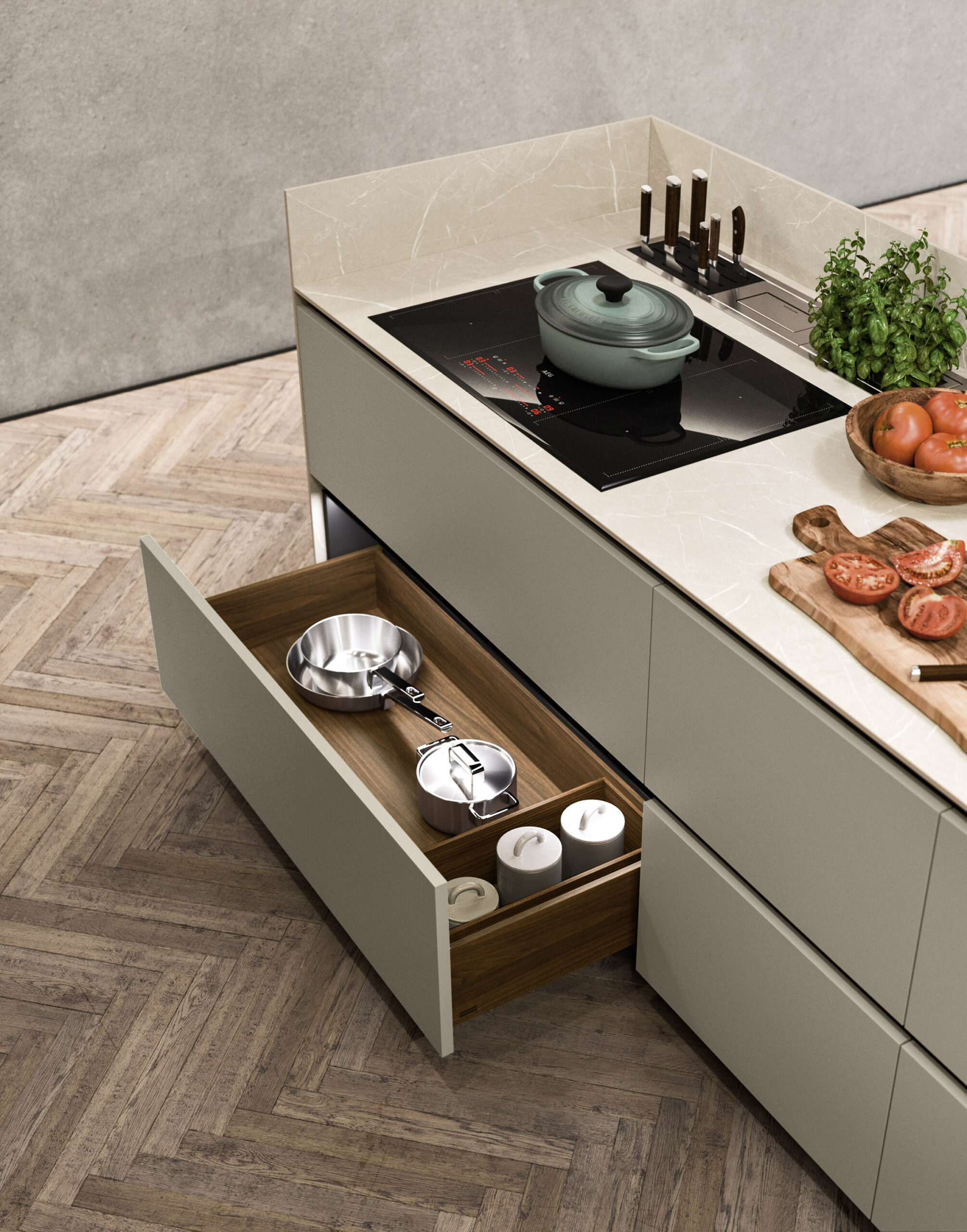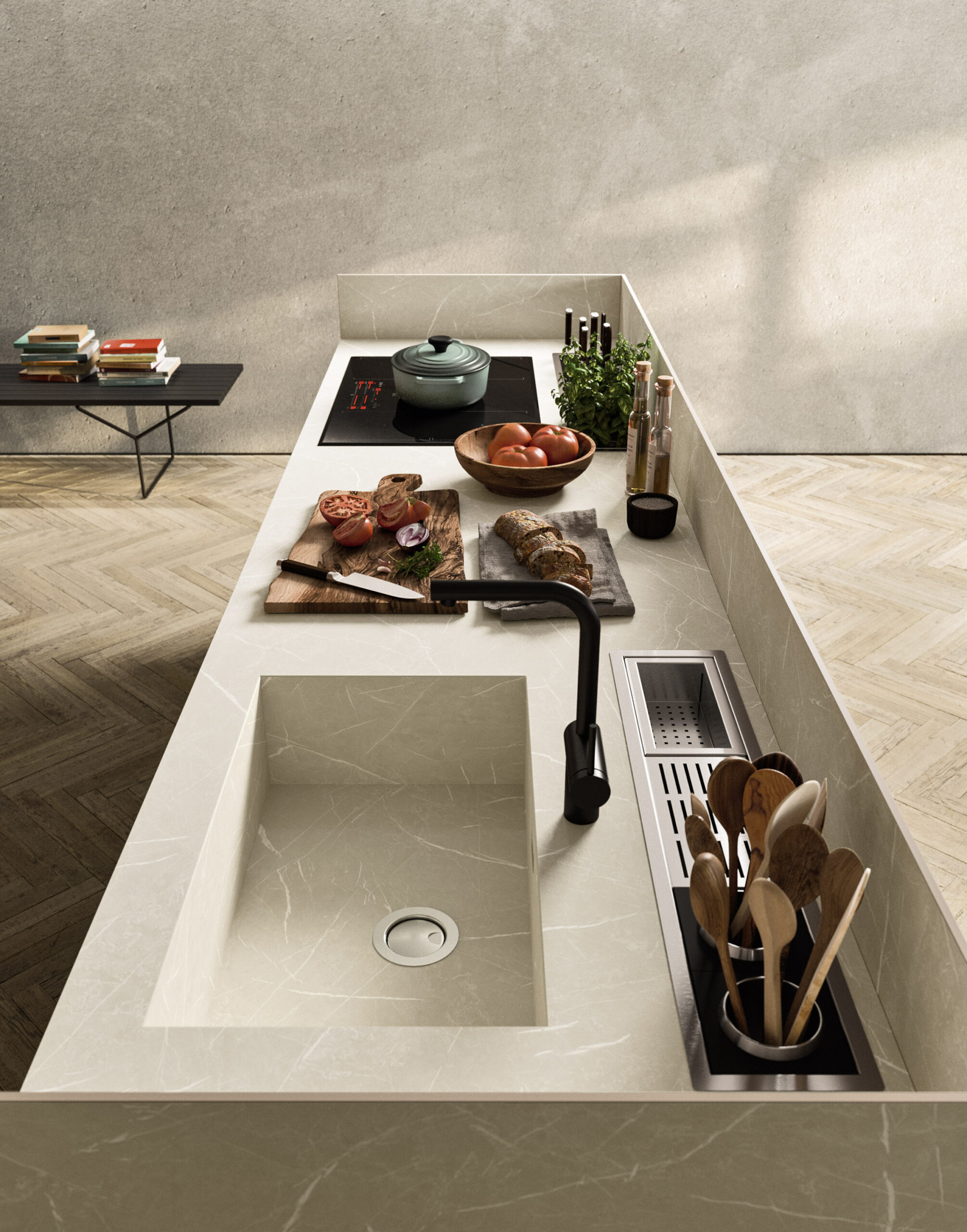 Το Principio ανοίγεται στη ζωή, με εξατομικευμένες λύσεις για ελεύθερη διαρρύθμιση της κουζίνας και του καθιστικού.