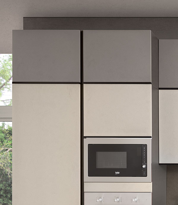 Περισσότερα ύψος, περισσότερη κομψότητα, μεγαλύτερη χωρητικότητα. Μπορείτε να επιλέξετε την κουζίνα σας σε λεπτά φινιρίσματα, έλατο και τσιμεντένιο.