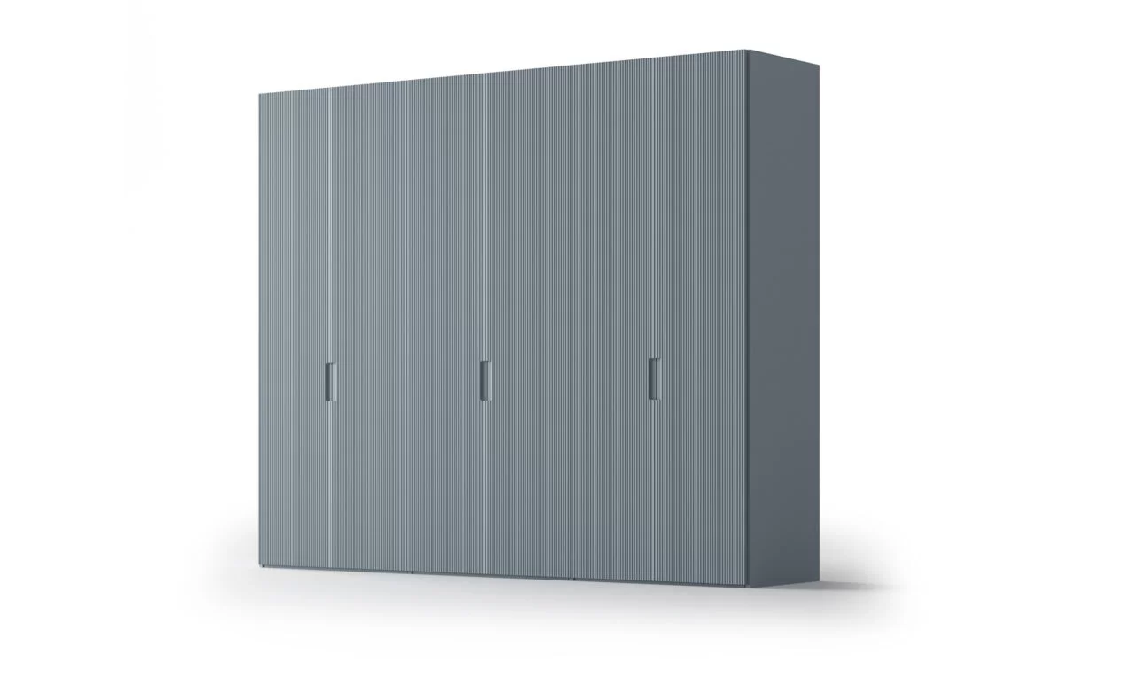 Η επιφάνεια των πορτών χαρακτηρίζεται από ένα κυμματοειδές, τρισδιάστατο φινίρισμα που δίνει μοναδική αισθητική και βάθος στο σχεδιασμό της ντουλάπας. Διατίθεται σε διάφορες αποχρώσεις, επιτρέποντάς σας να προσαρμόσετε το τελικό αποτέλεσμα στο προσωπικό σας στιλ.