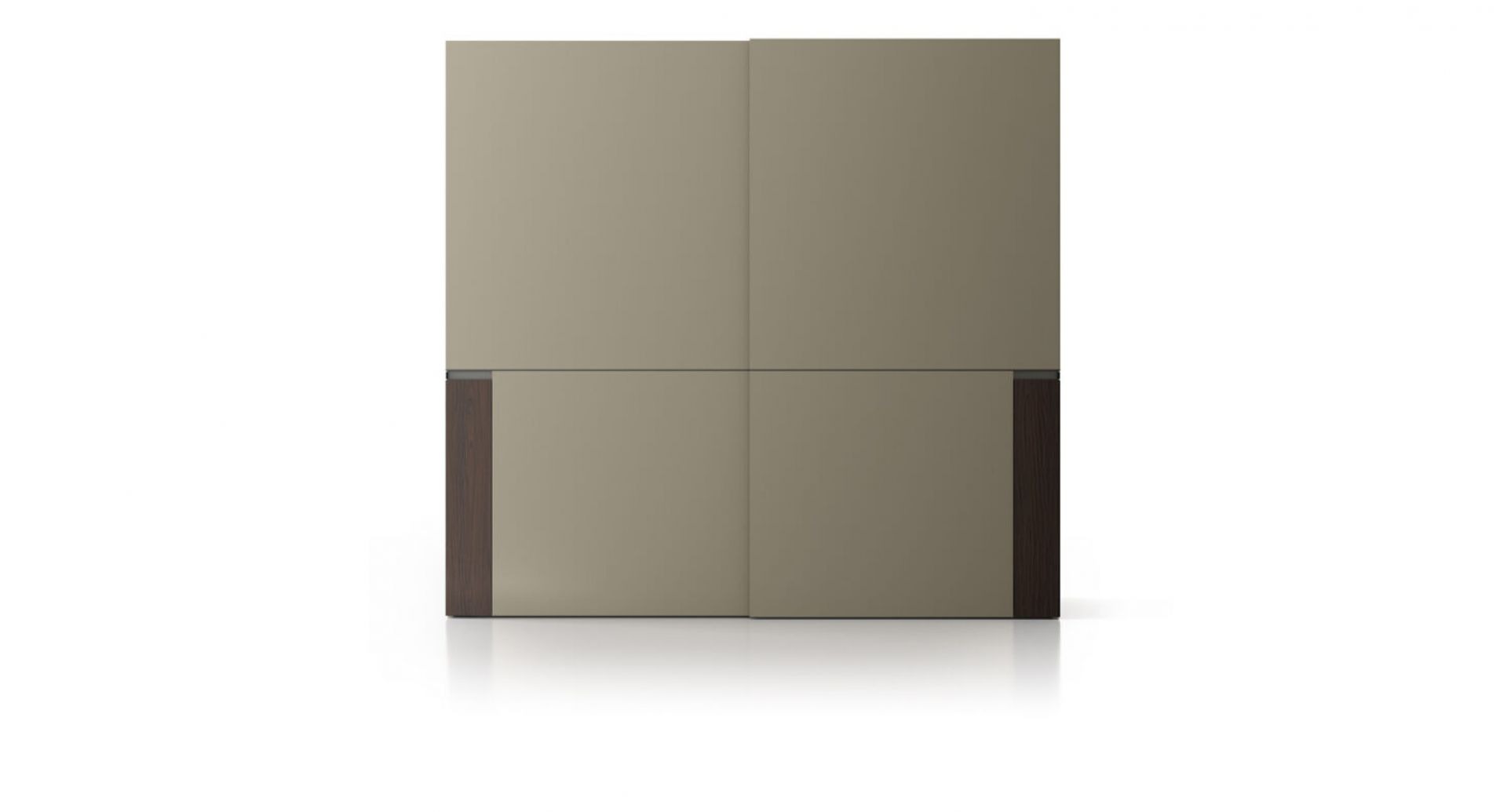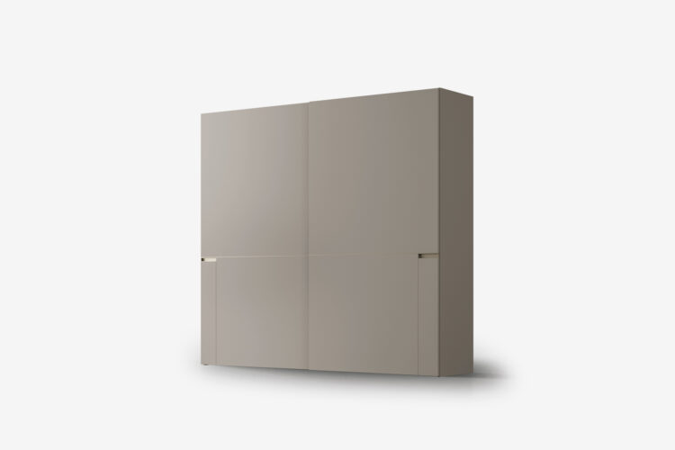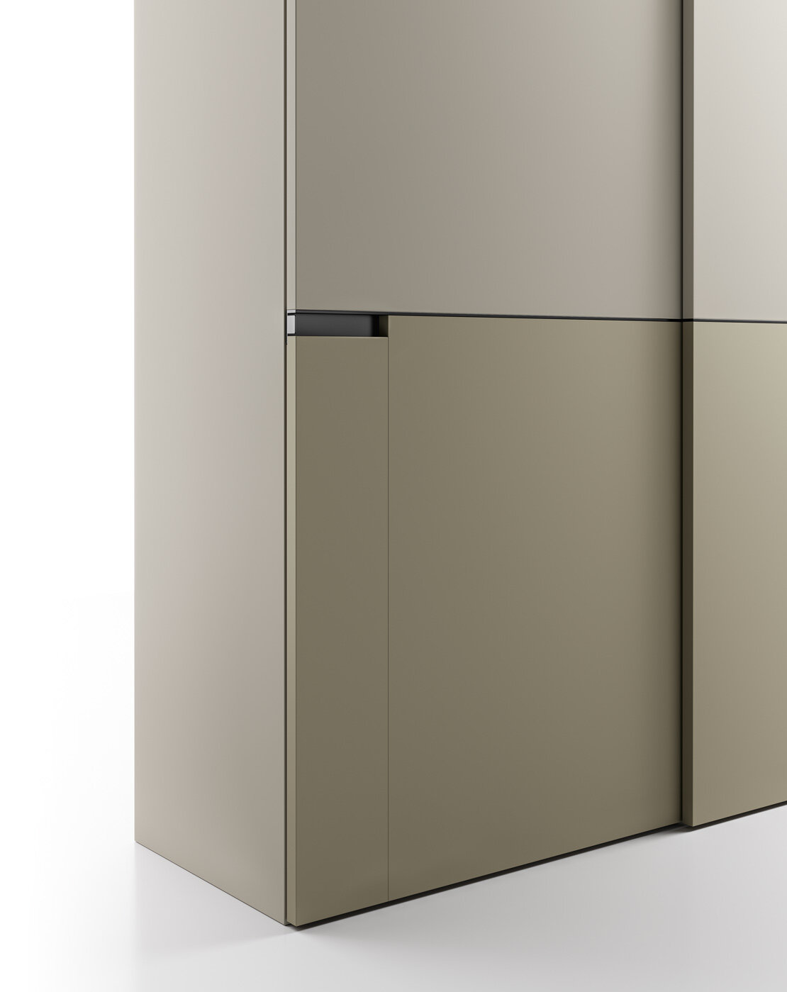 Η ντουλάπα Master sliding door με συρόμενη πόρτα έχει μινιμαλιστική μορφή και διαθέτει μεταλλική λαβή. Οι καθαρές γραμμές του σχεδιασμού της γκαρνταρόμπας τονίζονται με μια μοναδική λαβή σε μεταλλικό φινίρισμα. Αυτό το χαρακτηριστικό επεκτείνεται στο λεπτό ένθετο που διατρέχει τη μέση των θυρών.