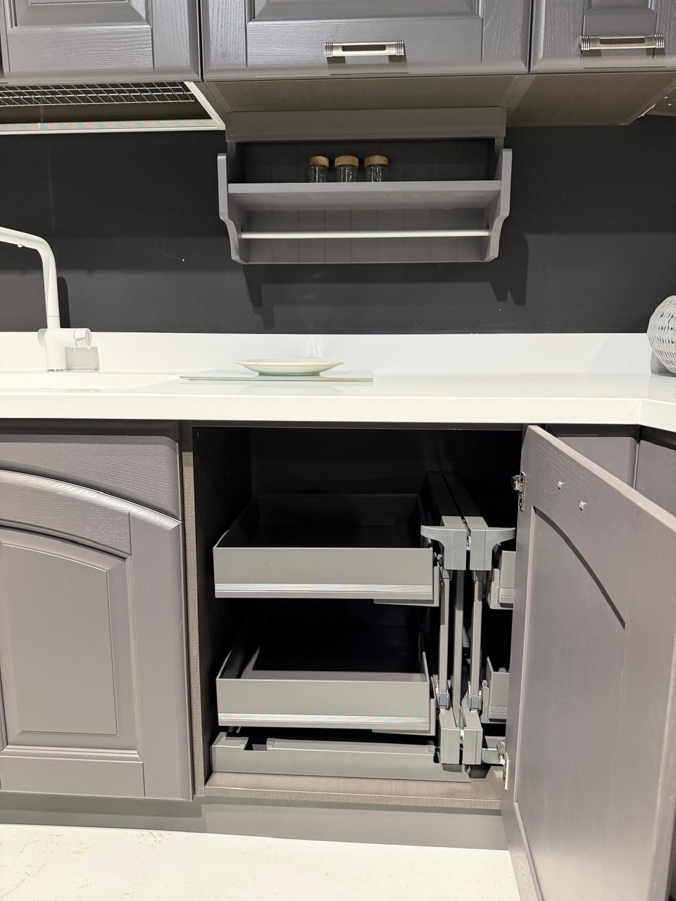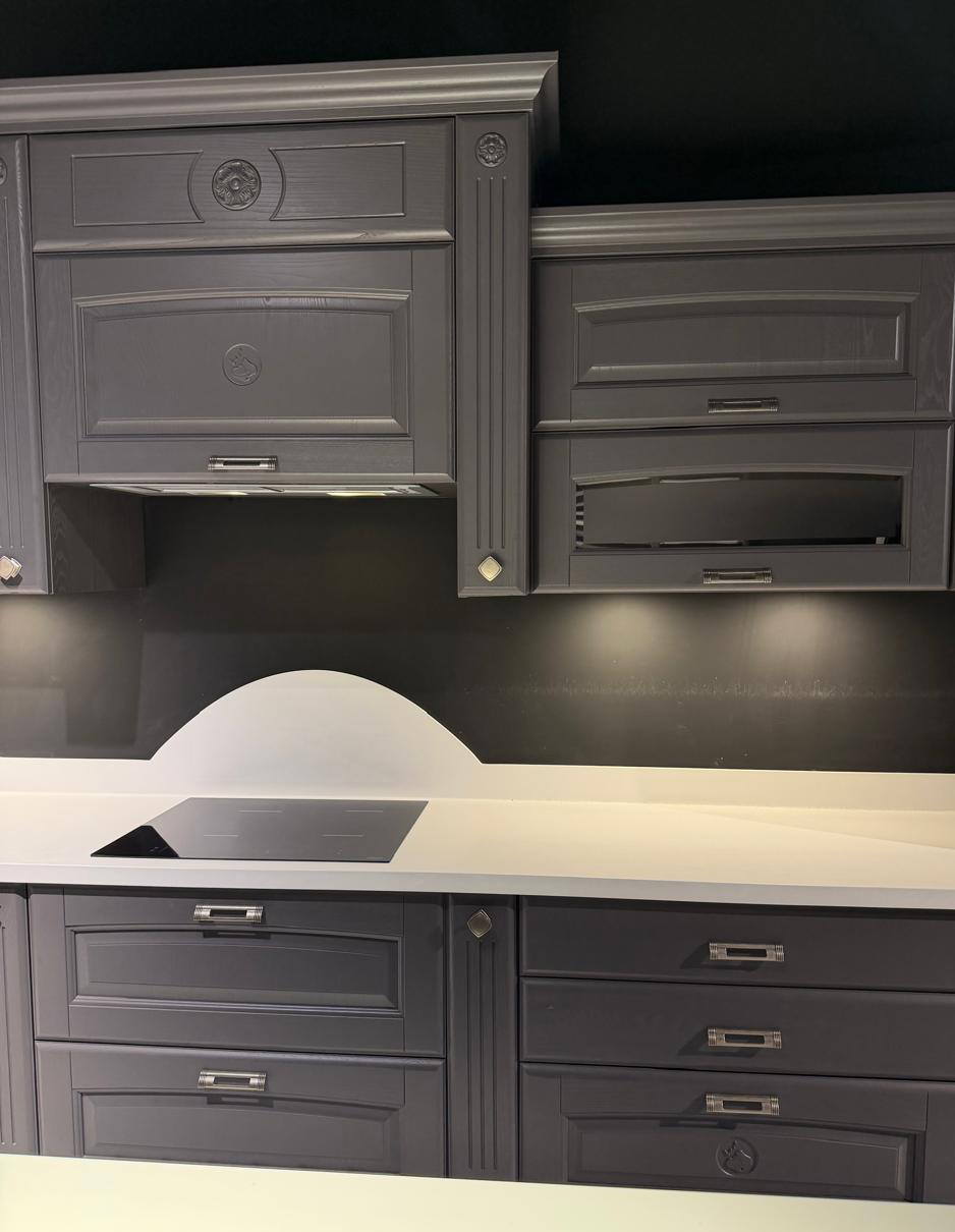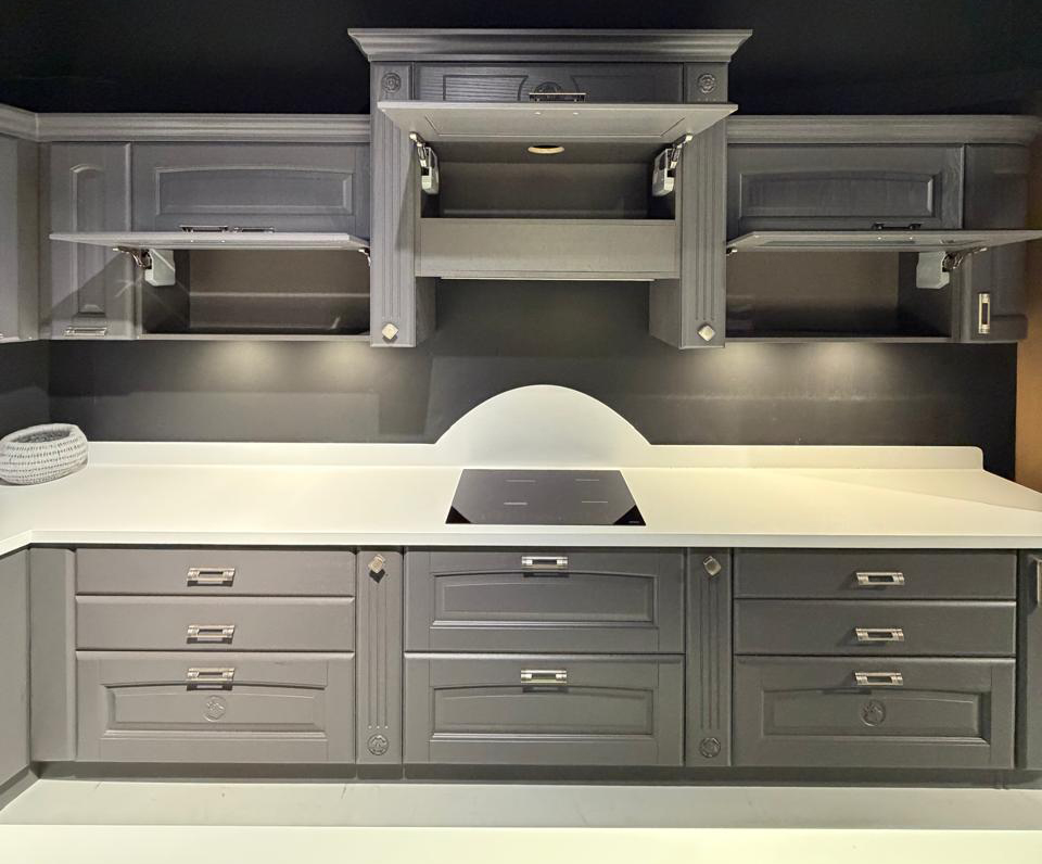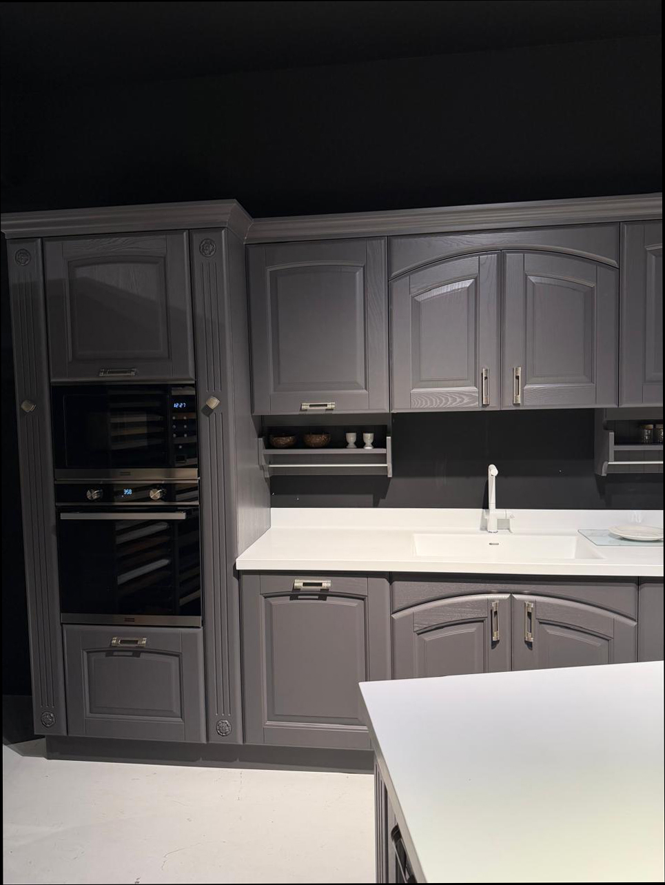 Το εκθεσιακό μοντέλο OLIMPIA XA αποτελείται από τη νησίδα, και μια γωνιακή σύνθεση που δημιουργούν ένα σύνολο με μεγάλο αποθηκευτικό χώρο το οποίο μπορεί να ενσωματωθεί και σε ενιαίους χώρους. Οι ηλεκτρικές συσκευές πωλούνται με επιπλέον αξία 1.000€.