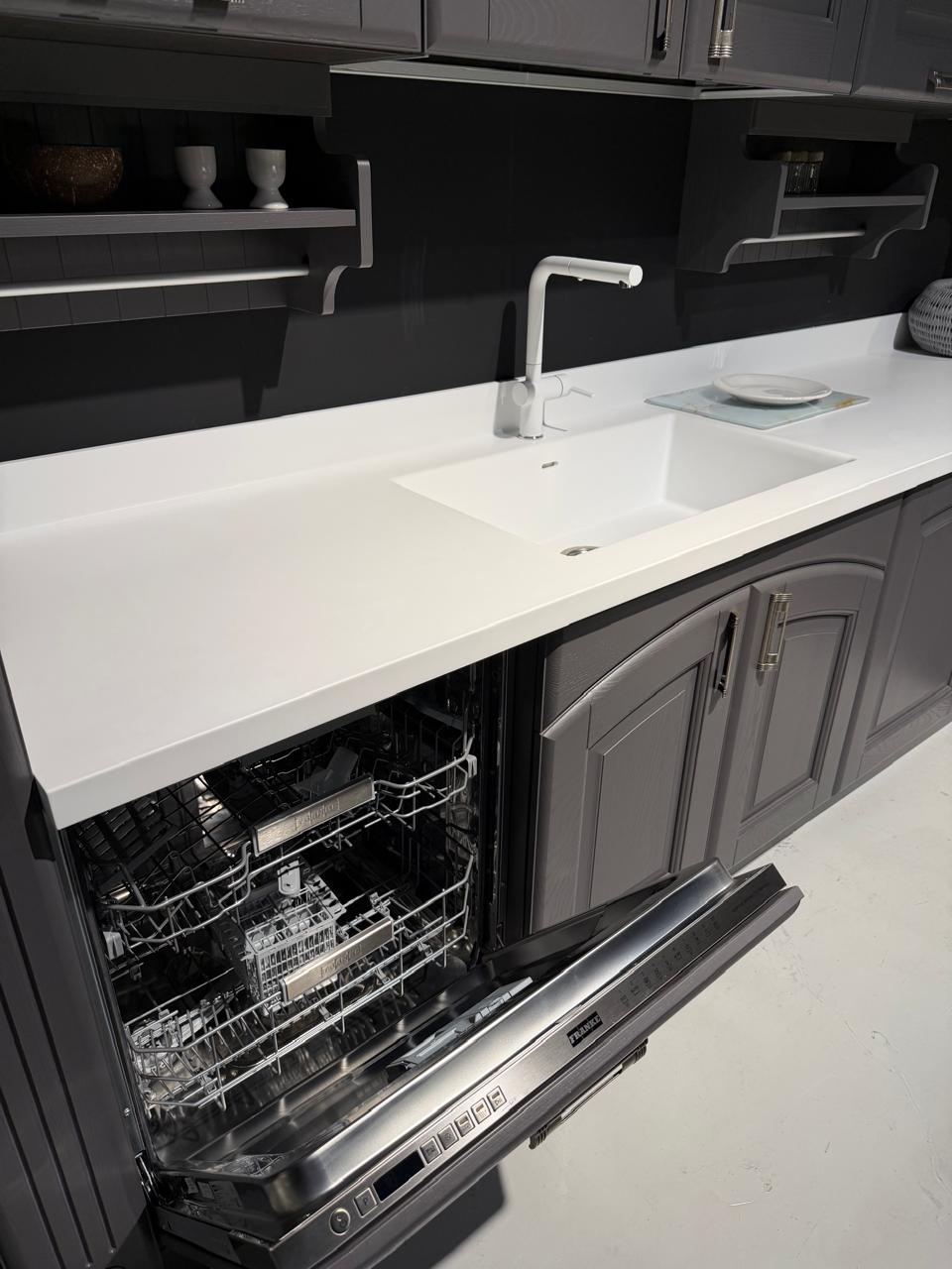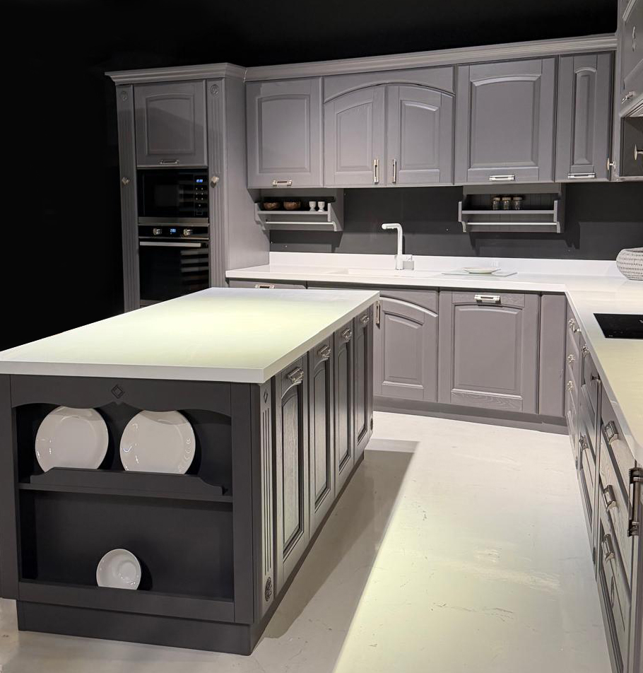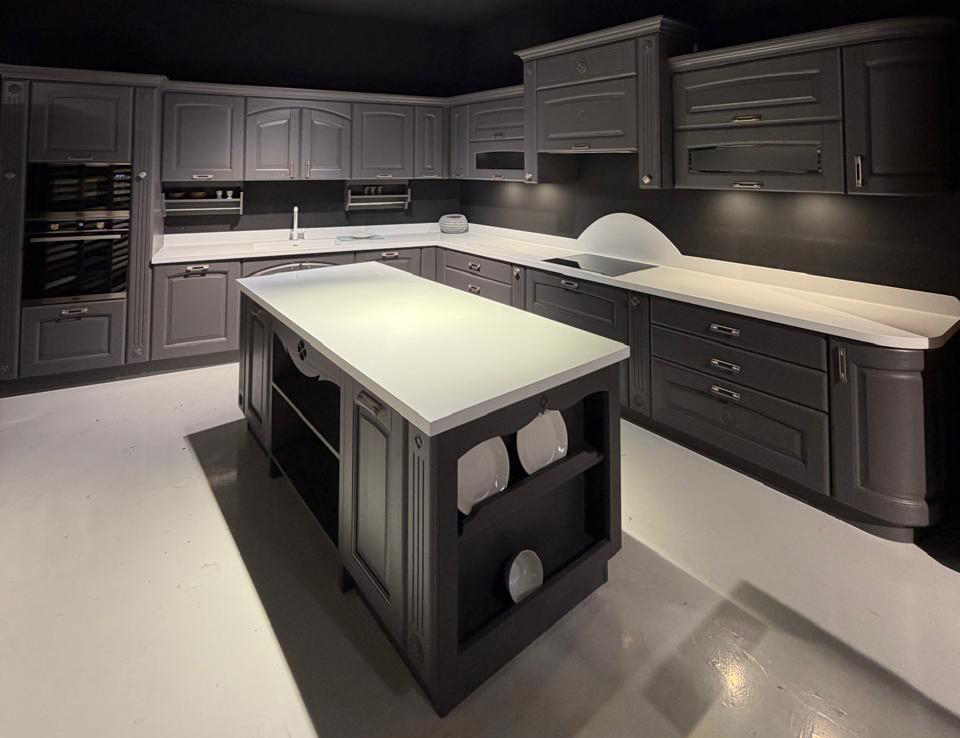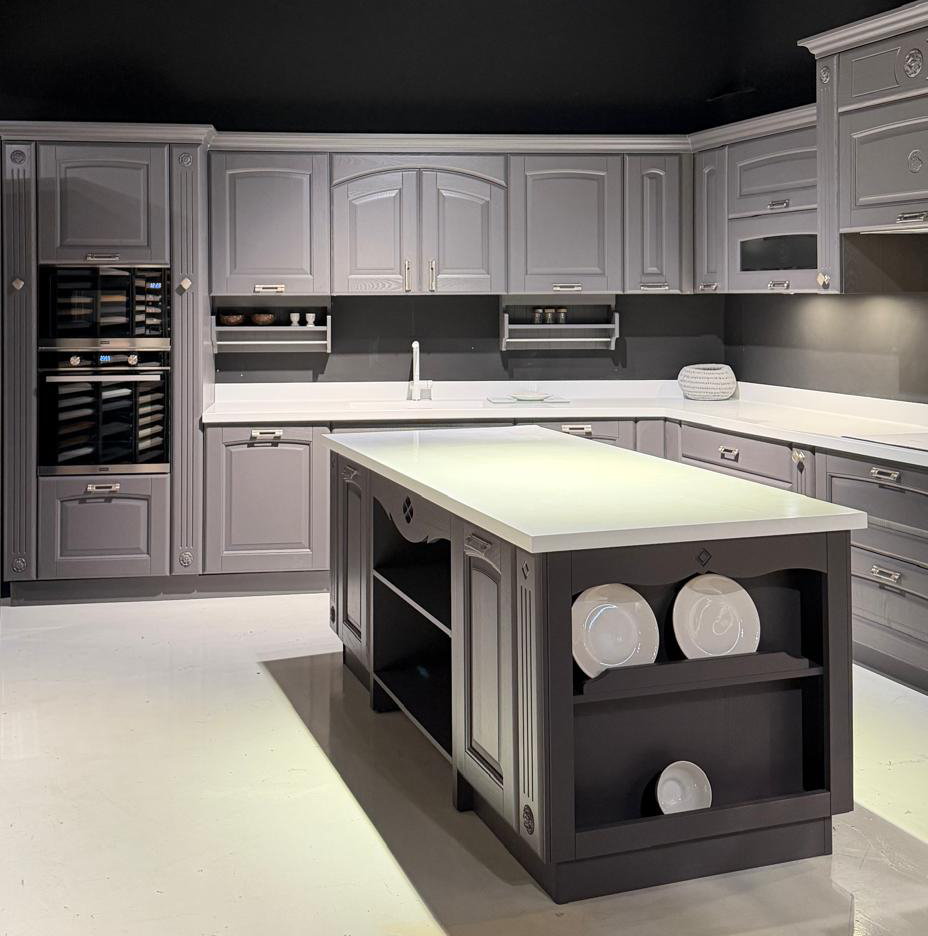 Το εκθεσιακό μοντέλο OLIMPIA XA αποτελείται από τη νησίδα, και μια γωνιακή σύνθεση που δημιουργούν ένα σύνολο με μεγάλο αποθηκευτικό χώρο το οποίο μπορεί να ενσωματωθεί και σε ενιαίους χώρους. Οι ηλεκτρικές συσκευές πωλούνται με επιπλέον αξία 1.000€.