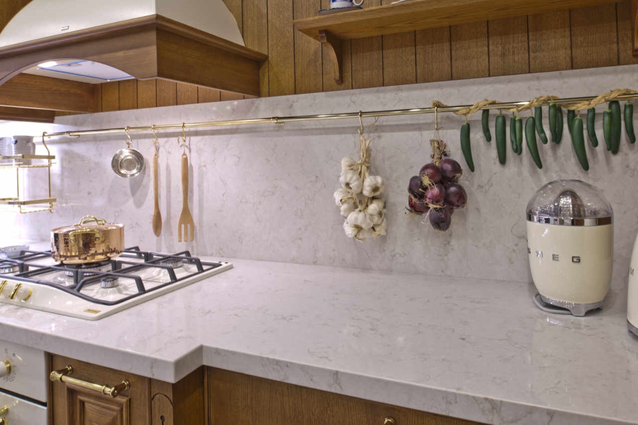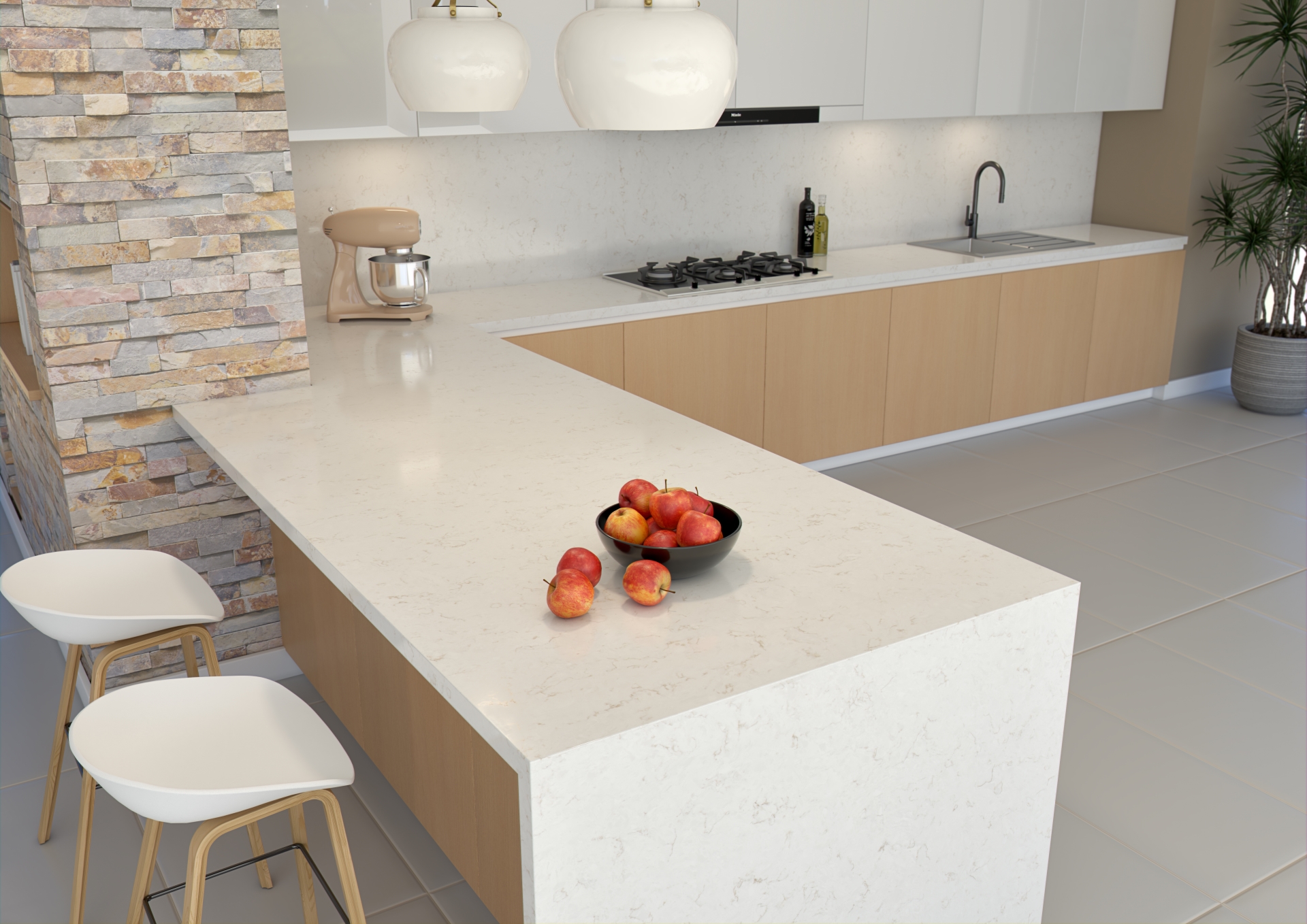 Ο πάγκος από χαλαζία Alinda ενσαρκώνει την απόλυτη έννοια της κομψότητας, μέσα από τον αρμονικό χορό των χρυσών φλεβών που αναδεικνύονται επάνω στο εκλεπτυσμένο λευκό φόντο. Η φυσική του λάμψη και η αίσθηση πολυτέλειας που αποπνέει τον καθιστούν ιδανικό για χώρους που στοχεύουν σε διαχρονική αισθητική και premium χαρακτήρα.