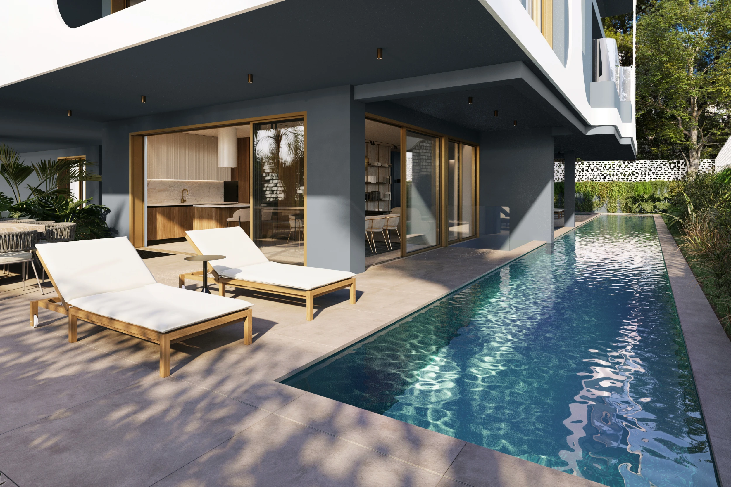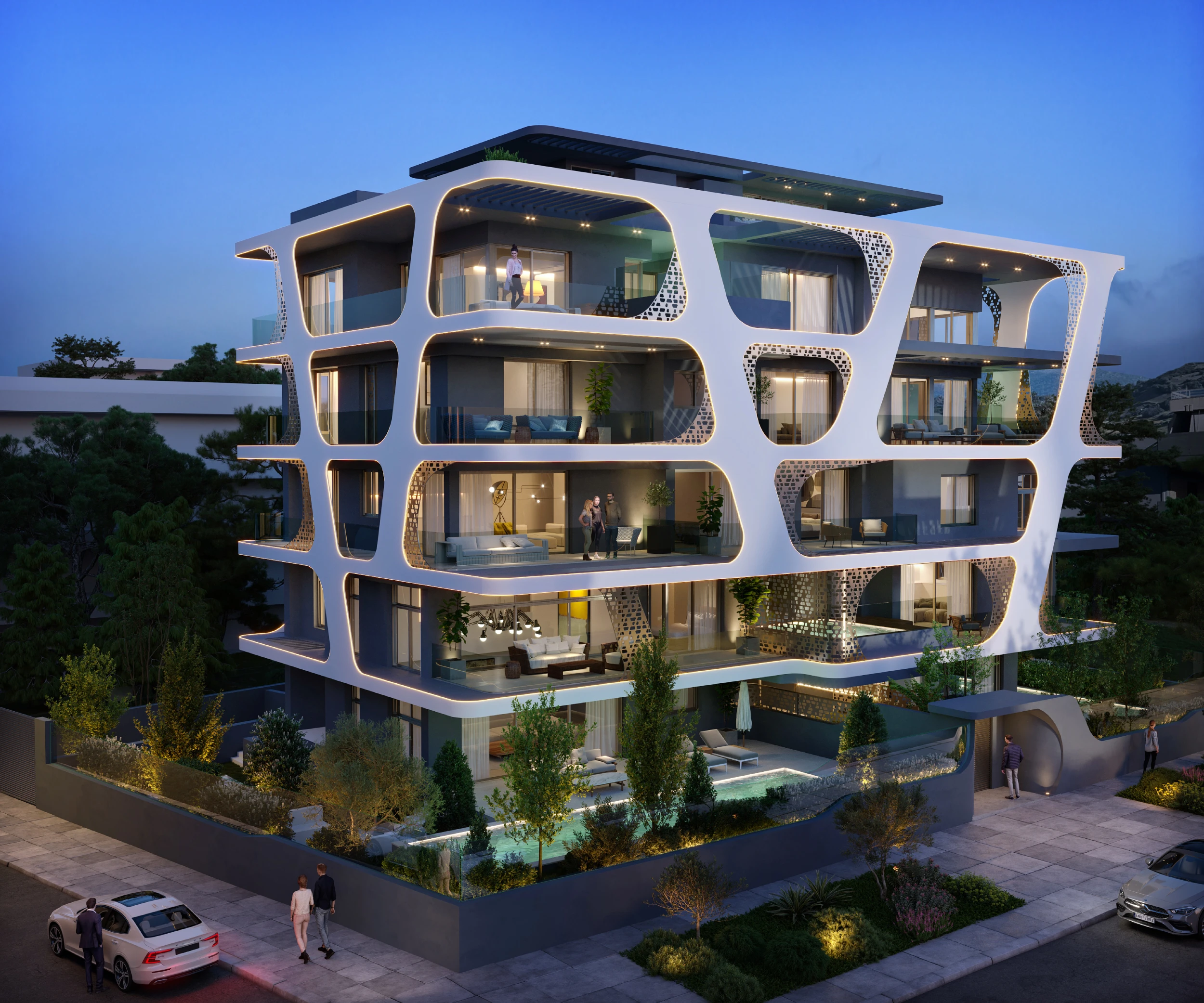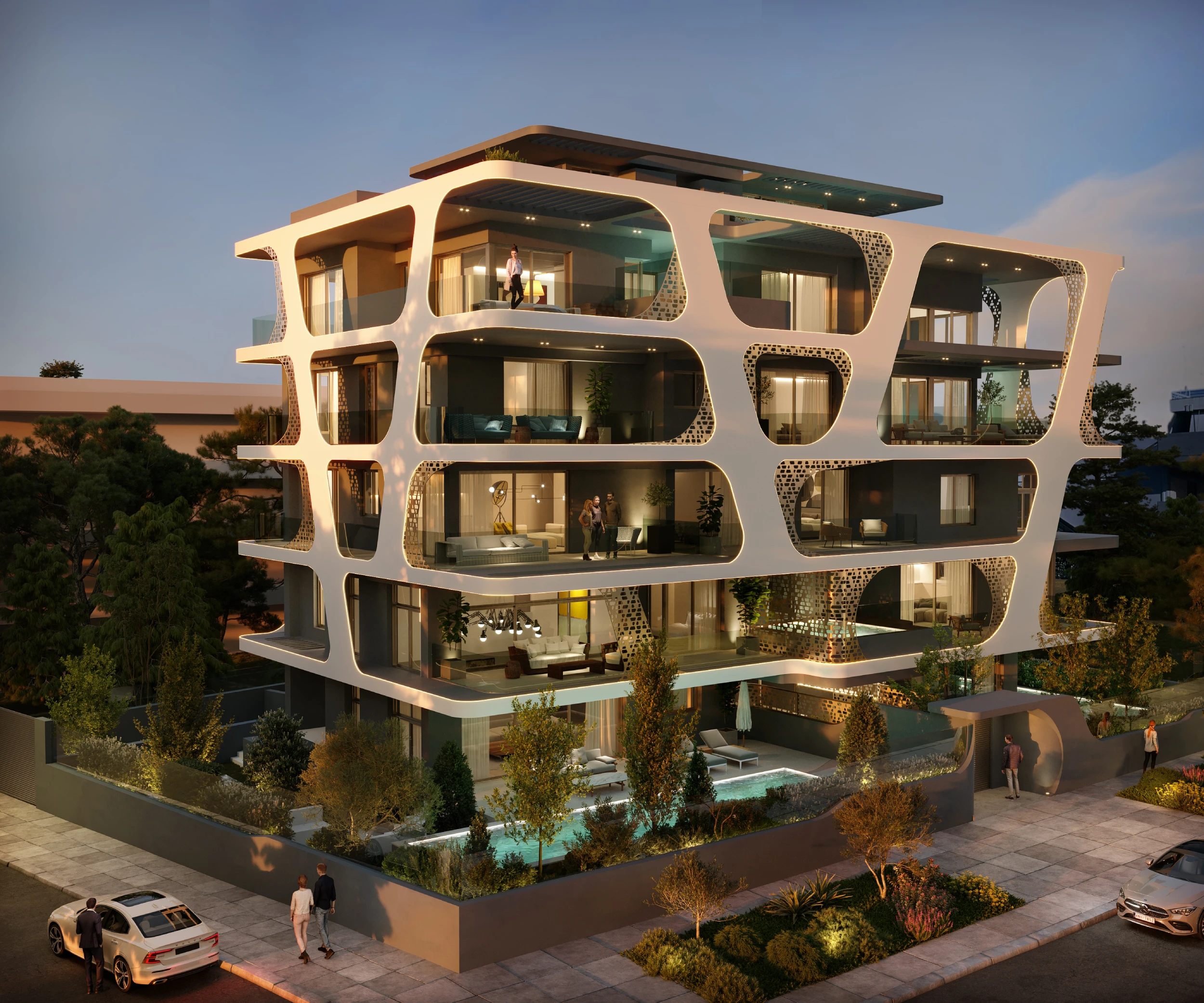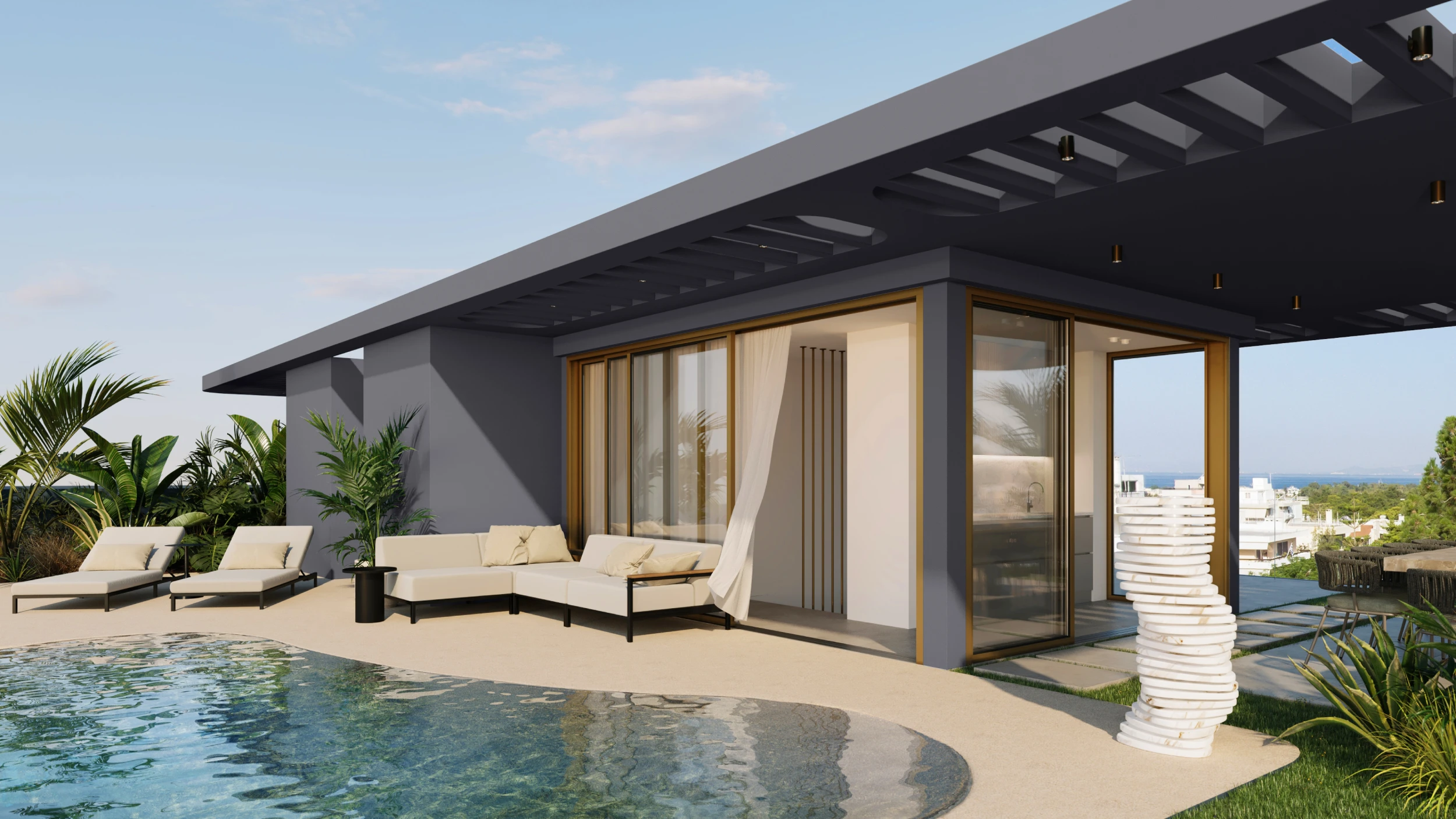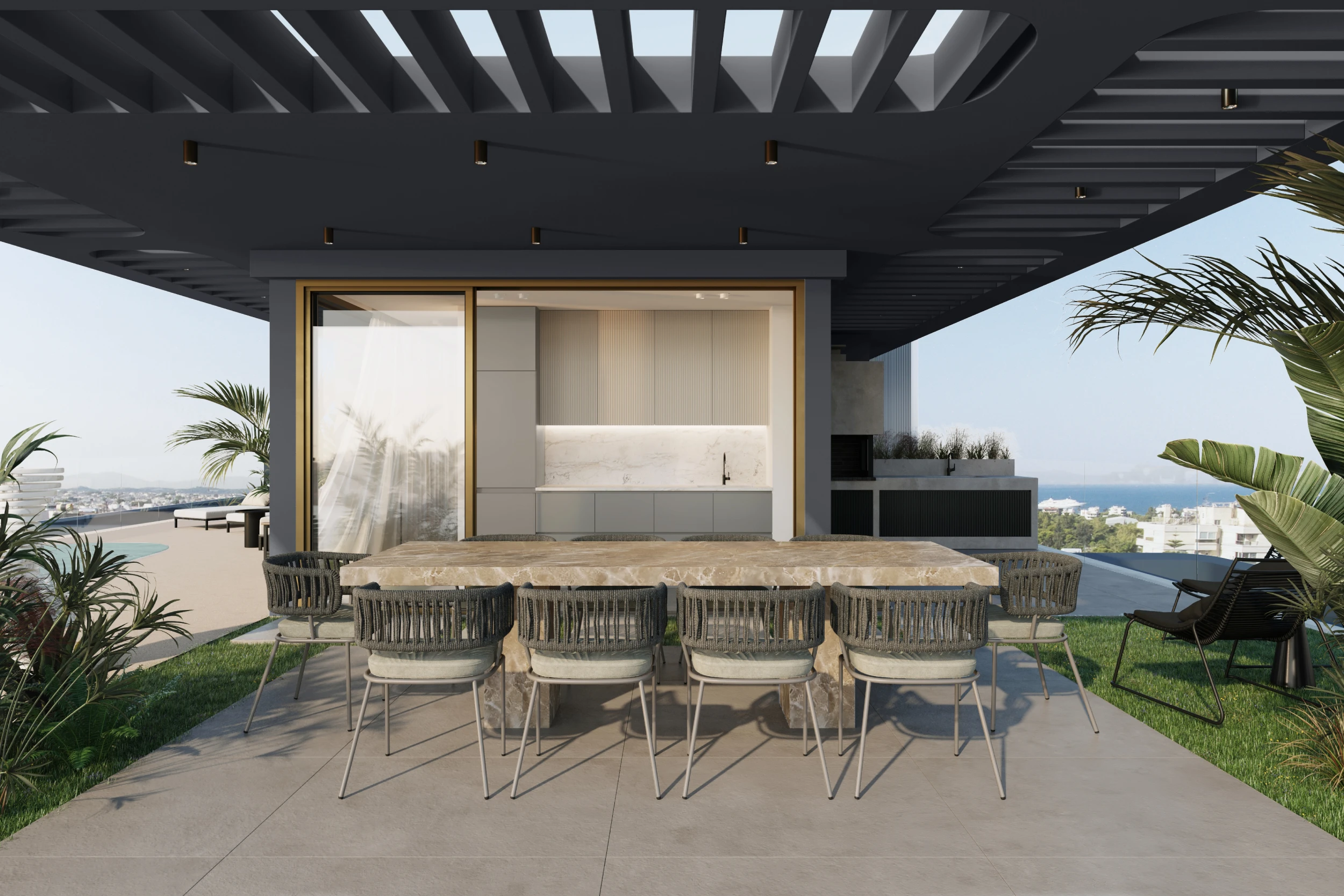 Το έργο περιλαμβάνει οροφοδιαμερίσματα υψηλής αισθητικής, όλα με ιδιωτικές πισίνες και πολλαπλές θέσεις στάθμευσης, ενώ η αρχιτεκτονική σύνθεση στοχεύει στη συμβίωση μορφής και λειτουργικότητας. Οι κατοικίες διαθέτουν ευρύχωρους εξωτερικούς χώρους, υψηλά standards κατασκευής και εντυπωσιακό αίθριο αμέσως μετά την είσοδο, προσφέροντας αίσθηση αποκλειστικότητας.