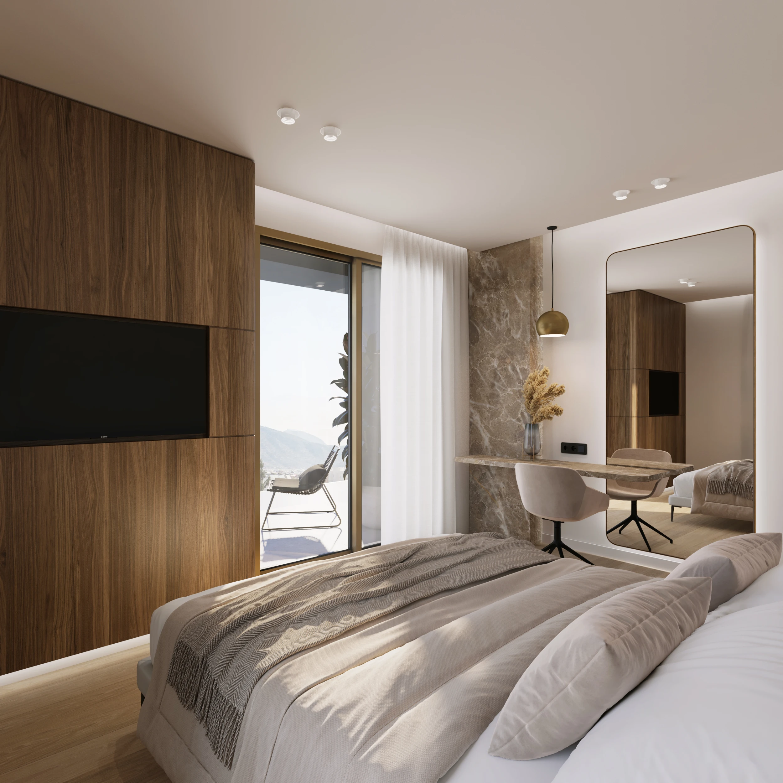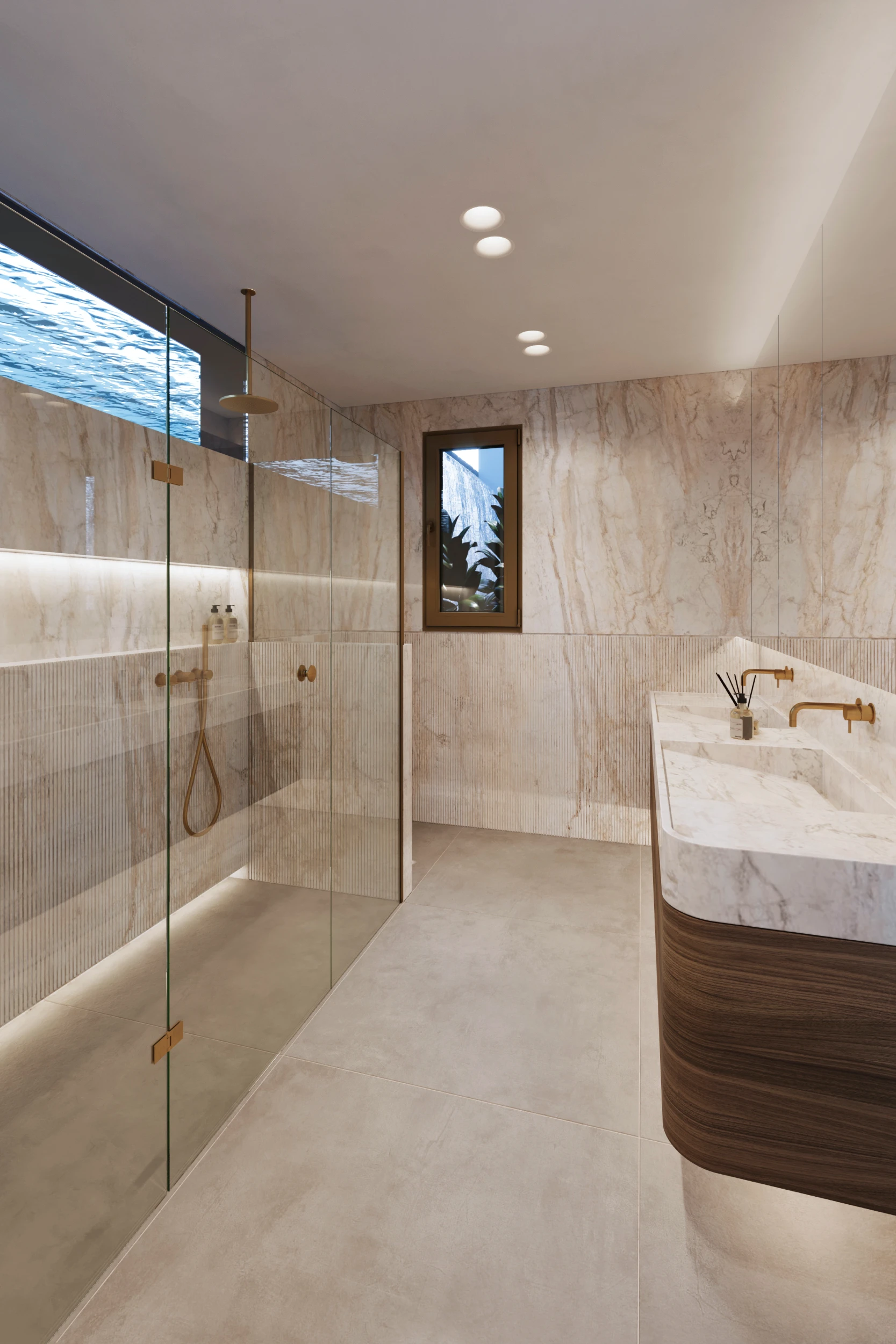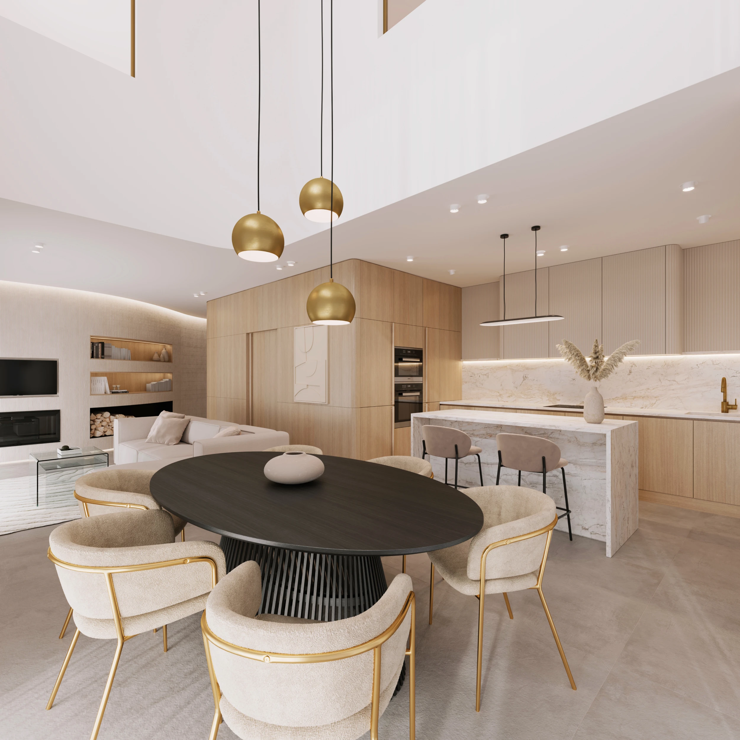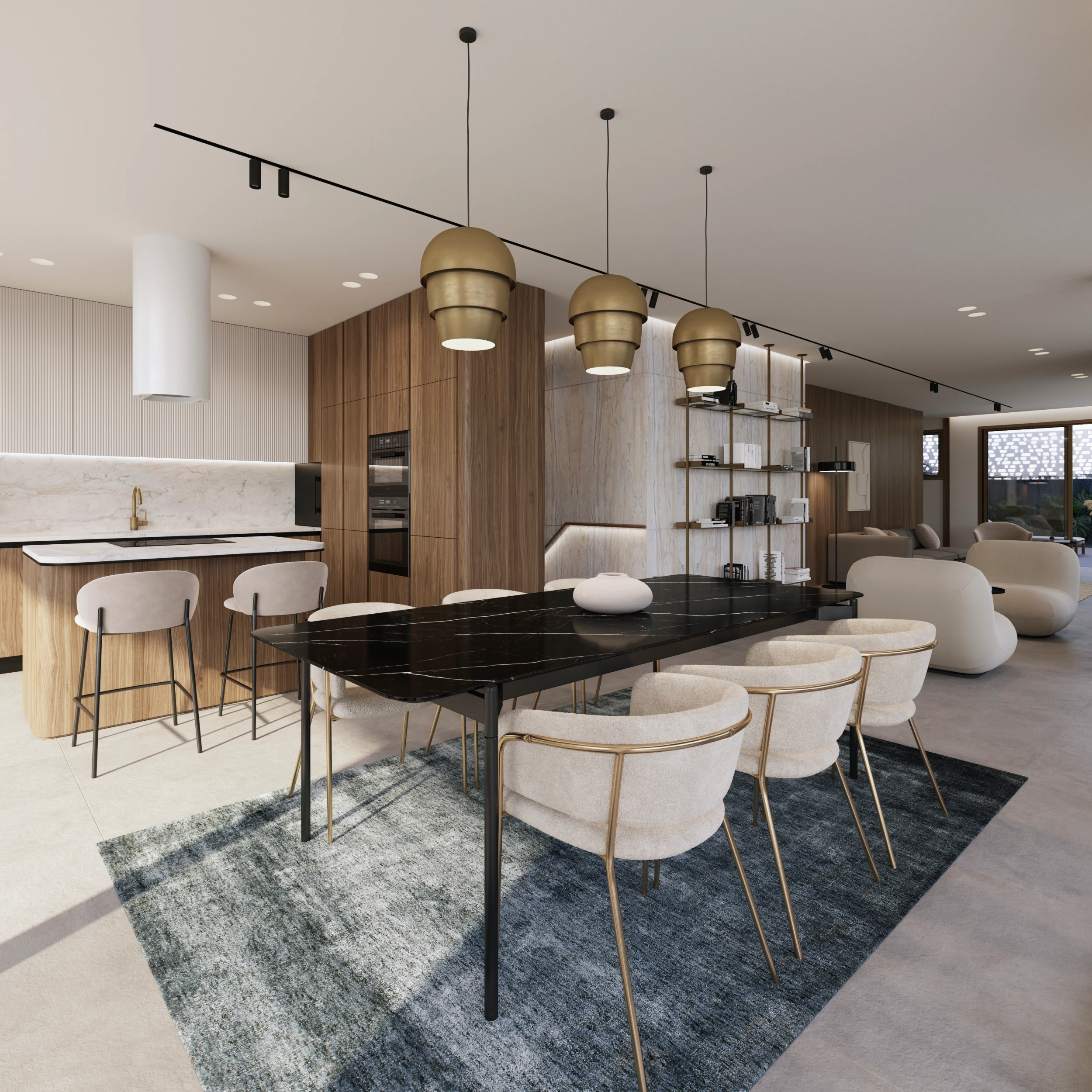Το έργο περιλαμβάνει οροφοδιαμερίσματα υψηλής αισθητικής, όλα με ιδιωτικές πισίνες και πολλαπλές θέσεις στάθμευσης, ενώ η αρχιτεκτονική σύνθεση στοχεύει στη συμβίωση μορφής και λειτουργικότητας. Οι κατοικίες διαθέτουν ευρύχωρους εξωτερικούς χώρους, υψηλά standards κατασκευής και εντυπωσιακό αίθριο αμέσως μετά την είσοδο, προσφέροντας αίσθηση αποκλειστικότητας.